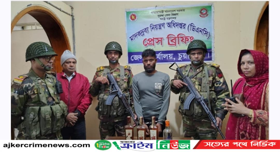 সোমবার বেলা সাড়ে ১১টায় চুয়াডাঙ্গা সদরের দৌলতদিয়াড় বঙ্গজপাড়ায় ৫৫ পদাতিক ডিভিশনের ওয়ারেন্ট অফিসার জাহিদুল আলম ও মাদকদ্রব্য নিয়ন্ত্রণ অধিদপ্তরের পরিদর্শক নাজমুল হোসেন খানের নেতৃত্বে এক অভিযান চালায়। এসময় আহসান হাবিবের ছেলে চিহ্নিত মাদক কারবারী তরিকুল ইসলাম (৪০)কে তার বাড়ি থেকে আটক করে। পরে তার স্বীকারোক্তিতে বাড়ি থেকে ৪ বোতল বিদেশী মদ ও ৫ বোতল ফেনসিডিল উদ্ধার করা হয়। চুয়াডাঙ্গা মাদকদ্রব্য নিয়ন্ত্রণ অধিদপ্তর এক বিজ্ঞপ্তিতে জানিয়েছে, আটক মাদক কারবারি তরিকুলকে আটকের পর উদ্ধারকৃত মাদকসহ তার বিরুদ্ধে পরিদর্শক নাজমুল হোসেন খান বাদী হয়ে চুয়াডাঙ্গা সদর থানায় মামলা দায়ের করেছেন।