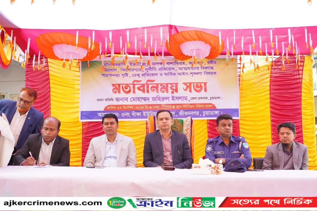 চুয়াডাঙ্গা প্রতিনিধিঃ চুয়াডাঙ্গার জীবননগরের বাকায় আইন-শৃঙ্খলা বিষয়ে মতবিনিময় সভা অনুষ্ঠিত হয়েছে।