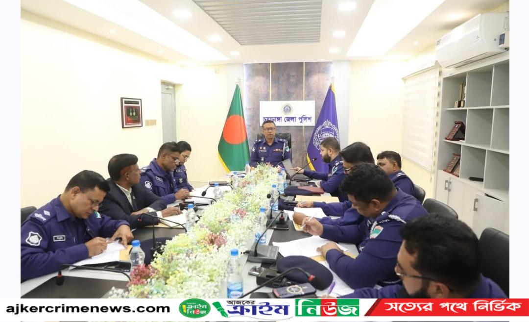 অপরাধ পর্যালোচনা সভায় মামলা নিষ্পত্তি, নিয়মিত মামলায় আসামি গ্রেফতার, ওয়ারেন্ট তামিল, রাত্রিকালীন ডিউটি, হোন্ডা মোবাইল, জাল টাকা/অজ্ঞানপার্টি/মলমপার্টি চক্র গ্রেফতার, অবৈধ অস্ত্র-গুলি, মাদকদ্রব্য ও চোরাচালান পণ্য উদ্ধার, ভাড়াটিয়া তথ্যফরম পূরণ, আইন-শৃঙ্খলা রক্ষাসহ যেকোনো অপ্রীতিকর ঘটনা/গুজব রোধকল্পে প্রয়োজনীয় ব্যবস্থা গ্রহণের নির্দেশনা প্রদান করা হয়।এসময় পুলিশ সুপার সকল অফিসার ও ফোর্সের অর্পিত দায়িত্ব পেশাদারিত্বের সাথে যথাযথভাবে পালনের আহ্বান জানান।
