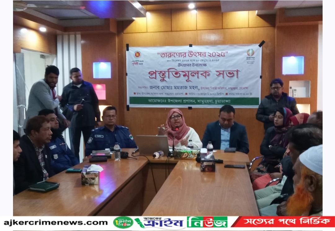 মাহমুদ হাসান রনি, চুয়াডাঙ্গা প্রতিনিধিঃ দামুড়হুদায় তারুণ্যের উৎসব ৩০ শে ডিসেম্বর ২০২৪ হতে ১৯ শে ফেব্রুয়ারি ২০২৫ উদযাপন উদযাপন উপলক্ষে প্রস্তুতি সভা অনুষ্ঠিত হয়েছে।