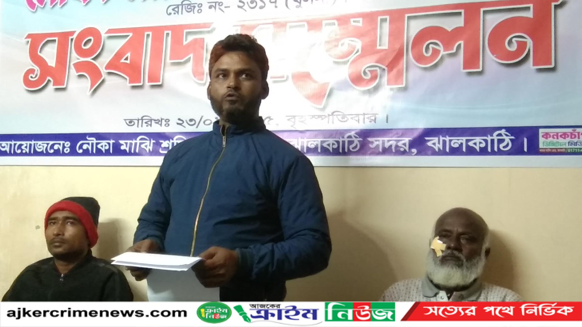 ঝালকাঠি প্রতিনিধি :ঝালকাঠি পৌরসভা খেয়া ঘাটের মাঝিরা সংবাদ সম্মেলন করেছে। বৃহস্পতিবার রাতে ঝালকাঠি শহরের একটি অফিসে এ সংবাদ সম্মেলন অনুষ্ঠিত হয়। এতে লিখিত বক্তব্য পাঠ করেন সংগঠনের সাধারণ সম্পাদক মোঃ হেমায়েত হোসেন। তিনি লিখিত বক্তব্যে বলেন, গত ১৮ জানুয়ারি শনিবার থেকে আজ পর্যন্ত মোঃ বাদল বিশ্বাস ও আমিরুল বিশ্বাস এর সন্ত্রাসি বাহিনির হাতে লাঞ্চিত হয়ে গৃহবন্দি অবস্থায় আছেন। তাই আমরা পৌরসভা খেয়াঘাটের ট্রলার শ্রমিক ইউনিয়ন (রেজিঃ ২৩১৭ খুলনা) এর ২৪ জন মাঝি দীর্ঘ দিন যাবৎ সরকারের কাছ থেকে ইজারা নিয়ে ঘাট পরিচালনা করি। জনগনের এ যাবৎ কোন অভিযোগ নাই। কিন্তু গত ১৮ জানুয়ারি কতিপয় দুর্বৃত্ত ঘাটে গিয়ে ট্রলার শ্রমিকদের কাছে এক লক্ষ টাকা চাঁদা দাবি করে। চাঁদা না দেয়ায় ট্রলার শ্রমিকদের বেদম মারপিট করে। ট্রেড ইউনিয়নের অফিস ভাংচুর করে এবং ট্রলার ও অর্থ লুট করে নিয়ে যায়। যা এখনো পাওয়া যায়নি। কিন্তু ১৮ জানুয়ারি থেকে এ পর্যন্ত সেই চাঁদাবাজ, সন্ত্রাসীরা খেয়া ঘাট বন্ধ করে জনগনেকে খেয়া পারাপারে বাধাঁ দেয় এবং অটো, ভ্যান, মটর সাইকেল সহ যাবতীয় যানবাহন বন্ধ করে রাস্তা ঘাটে সন্ত্রাসী কায়দায় আক্রমণ করে এলাকায় ত্রাস সৃষ্টি করে সাধারণ জনগনকে খেয়া পারাপার করতে দিচ্ছে না। বর্তমানে পৌরসভার ইজারাকৃত খেয়াঘাটের পাশেই অবৈধ ভাবে একটি নতুন খেয়াঘাট নির্মাণ করতেছেন যা আইন বহিভূর্ত । জনগনের বাজারঘাট ও মালামাল বহনে দুর্ভোগ ও সাধরণ জনজীবন ব্যাহত হচ্ছে। তাই ঝালকাঠি বিভিন্ন মহলে এই সন্ত্রাসী বাহিনীর হাত থেকে আমরা মাঝিরা ঘাটের স্বাভাবিক পরিবেশ ফিরে পাই এবং ছেলে মেয়ে নিয়ে ডাল ভাত খেয়ে বেচে থাকার জন্য ঝালকাঠি জেলার বিভিন্ন মহলের প্রতি আহ্বান জানানো হয়েছে সংবাদ সম্মেলনে। এসময় অন্যানের মধ্যে উপস্থিত ছিলেন সংগঠনের কোষাধ্যক্ষ মো. এনায়েত মুন্সি, সদস্য মো. বাচ্চু বেপারী। ঝালকাঠি সদর থানার ওসি মো. মনিরুজ্জামান বলেন,‘ পৌরসভা খেয়া ঘাটের নিয়ন্ত্রণ নিয়ে বিবাদমান দুটি দলের মধ্যে গত তিন দিন যাবৎ ঝামেলা চলছে। এ বিষয়ে উভয় পক্ষ মৌখিক ভাবে থানায় অবহিত করেছে। এ ঘটনায় উভয় পক্ষ মামলার প্রস্তুতি নিচ্ছে। অভিযোগ পেলে আইনগত ব্যবস্থা নেওয়া হবে।