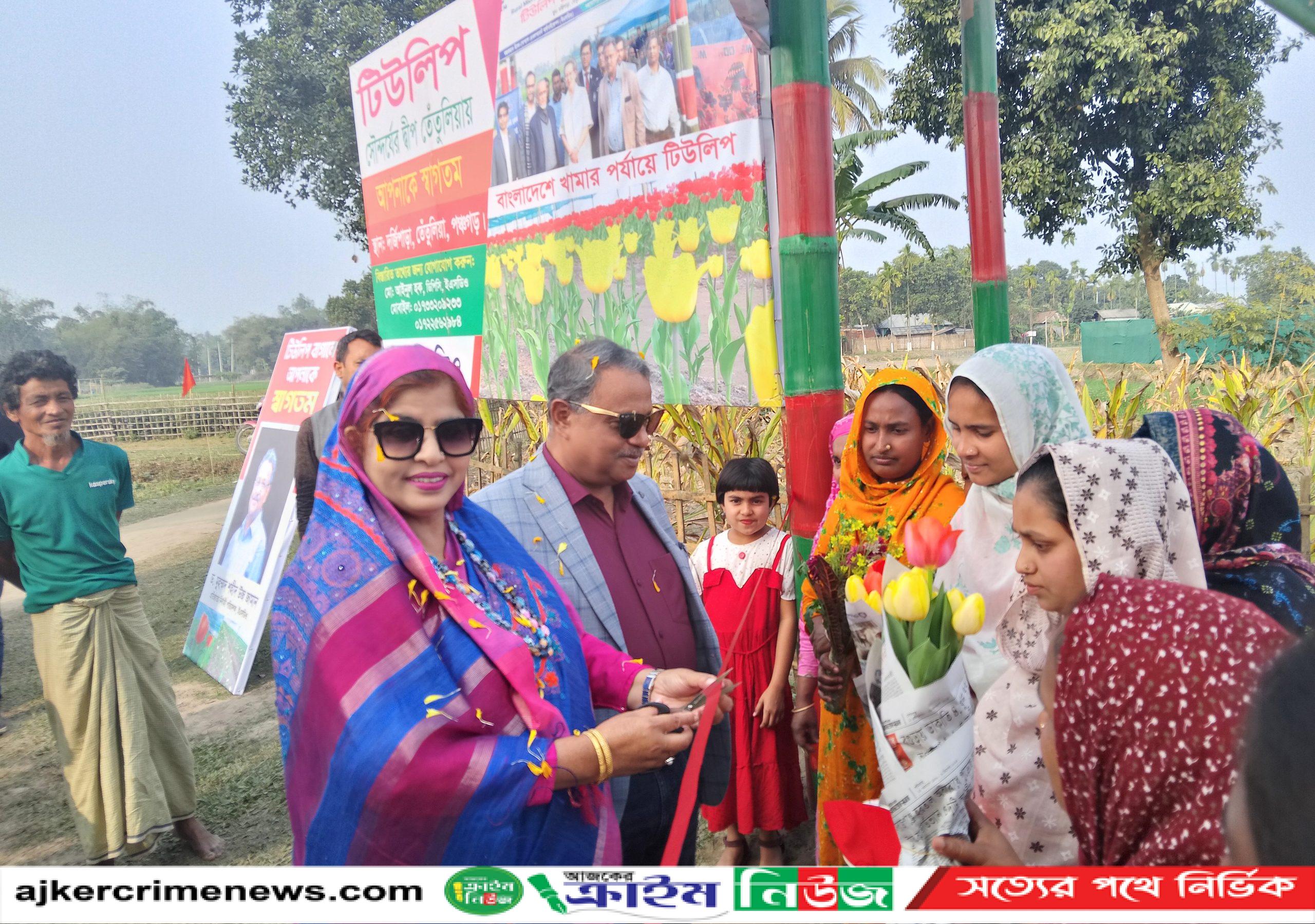 গতকাল দুপুরে উপজেলার দর্জিপাড়ায় গ্রামে টিউলিপ বাগানের ফিতা কেটে পর্যটকদের জন্য উদ্বোধন করেন ইকো সোশ্যাল ডেভেলপমেন্ট অর্গানাইজেশনের (ইএসডিও) পরিচালক (প্রশাসন) ড. সেলিমা আখতার, নির্বাহী পরিচালক ড. মুহম্মদ শহীদ উজ জামান দম্পতি।