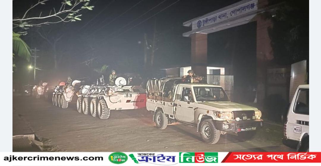গোপালগঞ্জের টুঙ্গিপাড়ায় পুলিশের কাছ থেকে আসামি ছিনতাই ও পুলিশের ওপর হামলা হওয়ার পর সারারাত টুঙ্গিপাড়া থানা পাহারা দিয়েছে সেনাবাহিনী।