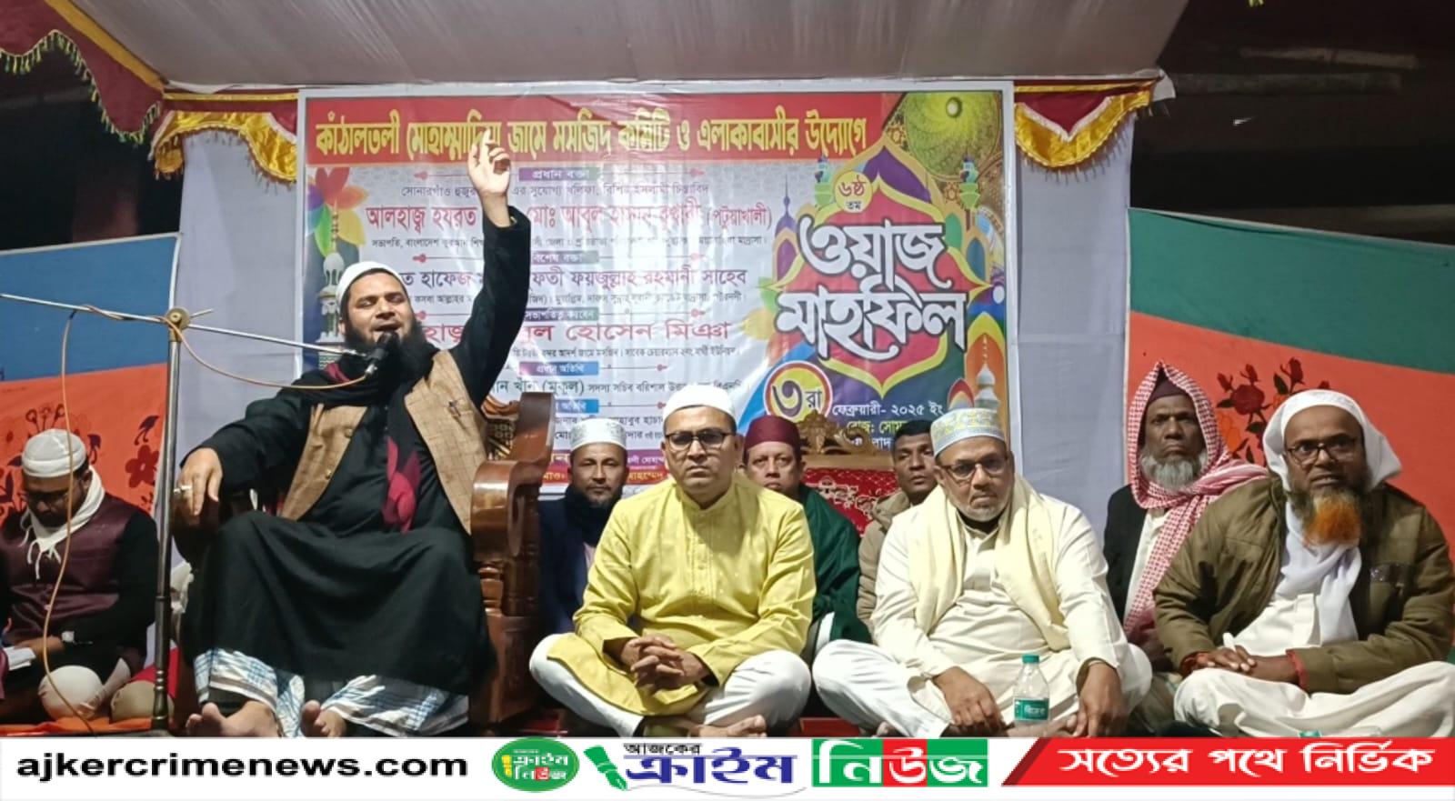 বরিশালের গৌরনদী উপজেলার ২নং বার্থী ইউনিয়নের কাঁঠালতলী মোহাম্মাদিয়া জামে মসজিদের বাৎসরিক ওয়াজ মাহফিল অনুষ্ঠিত হয়েছে। অনুষ্ঠিত মাহফিলের সভাপতিত্ব করেন কাঁঠালতলী মোহাম্মাদিয়া জামে মসজিদ পরিচালনা কমিটির সভাপতি কাজী সোবহান। অনুষ্ঠানে প্রধান অতিথি ছিলেন,জেলা বি এনপির সদস্য সচিব মিজানুর রহমান খান মুকুল।বিশেষ অতিথি ছিলেন গৌরনদী মডেল থানার অফিসার ইনচার্জ মোঃ ইউনুস মিয়া, বরিশাল বিভাগীয় সাংবাদিক ঐক্য পরিষদের সহ-সভাপতি সাংবাদিক বি এম মনির হোসেন, সাংবাদিক মোঃ রাজিব ইসলাম তারীম, মোঃ গিয়াস উদ্দিন হাওলাদার, আঃ গনি সরদার, আবদুল বারেক সরদার, মোঃ হাবুল হাওলাদার, কাজী কালাম, কাজী ইউসুফ,কাজী মুরাদ, মোঃ সবুজ সরদার, মোল্লা মনির হোসেন, কাজী খালিদ,গোলাম রাব্বিসহ মসজিদ পরিচালনা কমিটির সদস্যগণ। মাহফিলে প্রধান বক্তা ছিলেন মাওলানা মোঃ আবুল হাসান বুখারী ও বিশেষ বক্তা ছিলেন মাওলানা মুফতি ফয়জুল্লাহ রহমানী, অনুষ্ঠানের সার্বিক তত্বাবধানে ছিলেন কাঁঠালতলী মোহাম্মাদীয়া জমে মসজিদের ইমাম মাওলানা মোস্তফা নুর।