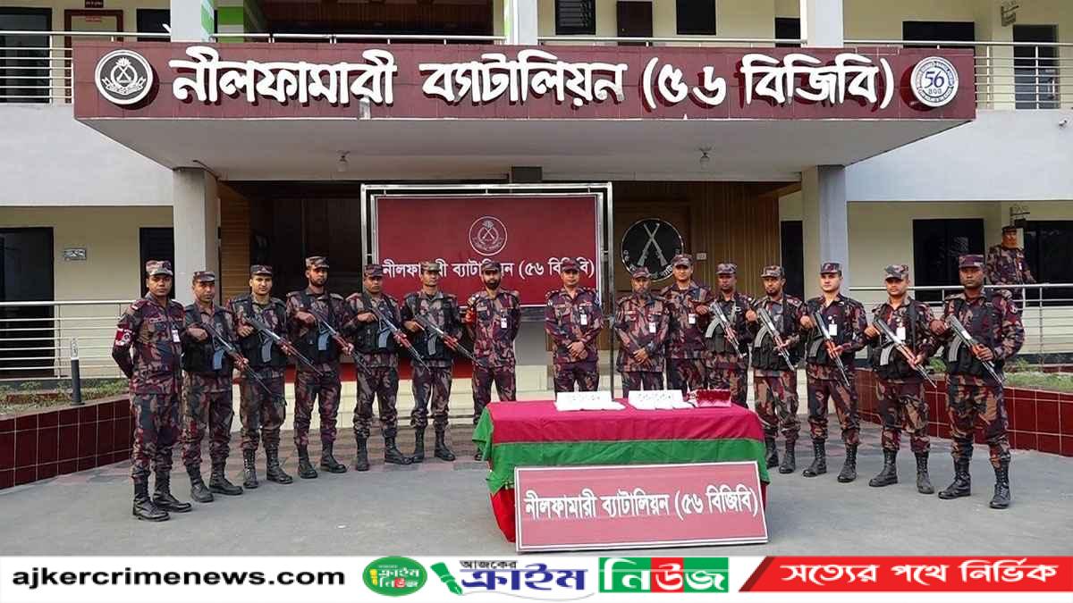 সুজন মহিনুল,ক্রাইম রিপোর্টার।।নীলফামারীতে ৬২ লাখ ৪০ হাজার টাকা মূল্যের হিরোইন ও কোকেন উদ্ধার করেছে বিজিবি।বুধবার(৫ ফেব্রুয়ারী)বিকেলে ৫৬ বিজিবি নীলফামারী ব্যাটালিয়নের সদর দপ্তরে আয়োজিত এক সংবাদ সম্মেলনে এ তথ্য জানানো হয়।এর আগে একইদিনের দুপুরে জেলা সদরের দারোয়ানী টেক্সটাইল মিলের অদূরে ৫৬ বিজিবি নীলফামারী ব্যাটালিয়নের এক নম্বর গেটের সামনের সড়কে একটি বাসে তল্লাশি চালিয়ে ওই মাদকদ্রব্য উদ্ধার করে।সংবাদ সম্মেলনে বিজিবির নীলফামারী ব্যাটালিয়নের ভারপ্রাপ্ত অধিনায়ক মেজর রিয়াদ মোর্শেদ জানান, গোপন সংবাদের ভিত্তিতে বিজিবি ব্যাটালিয়নের এক নম্বর গেটের সামনে নীলফামারী-সৈয়দপুর সড়কে বিশেষ চেকপোস্ট বসিয়ে ডোমার থেকে সৈয়দপুর গামী যাত্রীবাহী বিসমিল্লাহ পরিবহনে তল্লাশি চালানো হয়। এ সময় ওই বাসে মালিকবিহীন অবস্থায় ৯৭০ গ্রাম হিরোইন ও ৮৬০ গ্রাম কোকেন উদ্ধার করা হয়। যার আনুমানিক মূল্য ৬২ লাখ ৪০ হাজার টাকা। এবিষয়ে মামলা দায়েরের বিষয়টি প্রক্রিয়াধীন আছে।সংবাদ সম্মেলনে বিজিবি নীলফামারী ব্যাটালিয়নের সহকারী পরিচালক জসিম উদ্দিনও এসময় উপস্থিত ছিলেন।