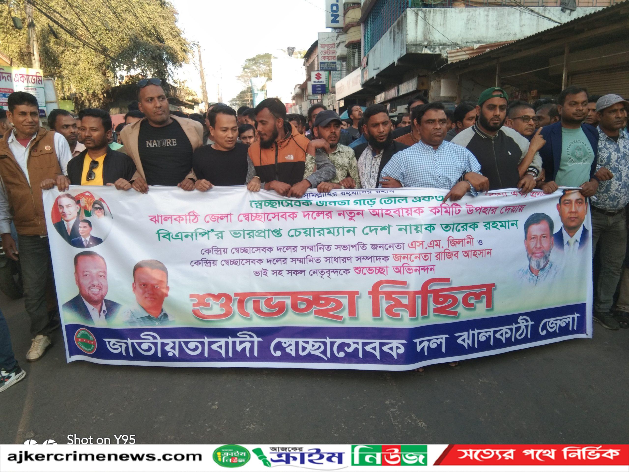 ঝালকাঠি প্রতিনিধি :ঝালকাঠি জেলা স্বেচ্ছাসেবক দলের তিন সদস্য বিশিষ্ট নতুন আহবায়ক কমিটি গঠন ।কমিটির সদস্য হলো আহবায়ক আজাদুর রহমান, সিনিয়র যুগ্ম আহ্বায়ক হেদায়েতুল ইসলাম সোহেল, সদস্য সচিব অ্যাডভোকেট মুশফিকুর রহমান বাবু ।স্বেচ্ছাসেবক দলের নতুন আহবায়ক কমিটি উপহার দেওয়ায় ৭ জানুয়ারি ঝালকাঠি শহরে শুভেচ্ছা মিছিল করে স্বেচ্ছাসেবক দলের নেতাকর্মীরা।মিছিলটি জেলা কার্যালয় থেকে শুরু হয়ে শহরের বিভিন্ন সড়ক প্রদক্ষিণ শেষে একই স্থানে দেশে শেষ হয়।নতুন আহবায়ক কমিটির সদস্যদের ফুলের মালা দিয়ে শুভেচ্ছা জানান জেলা মহিলা দলের সভাপতি মতিয়া মাহফুজ জুয়েল।