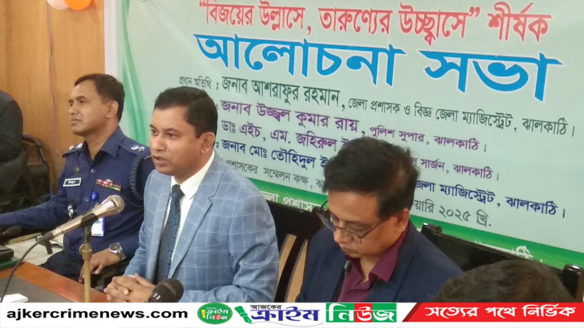 "বিজয়ের উল্লাসে ,তারুণ্যের উচ্ছ্বাসে"শীর্ষক আলোচনা সভা মঙ্গলবার ১১ জানুয়ারি সকালে জেলা প্রশাসক সম্মেলন কক্ষে অনুষ্ঠিত হয়েছে।