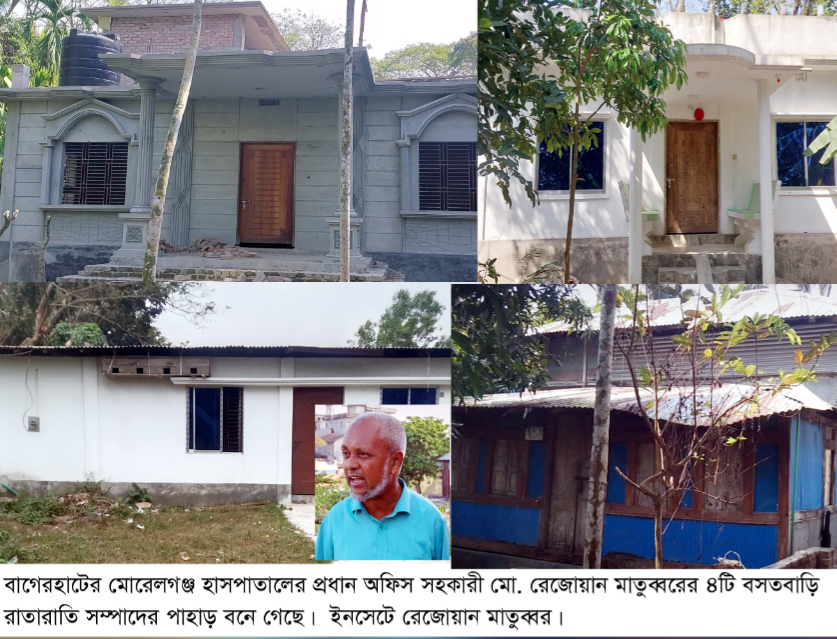 এস.এম. সাইফুল ইসলাম কবির, বাগেরহাট: বাগেরহাটের মোরেলগঞ্জ উপজেলা হাসপাতালের প্রধান অফিস সহকারী কাম হিসাব রক্ষক মো. রেজোয়ান হোসেন মাতুব্বর ৮ বছর ধরে একই কর্মস্থলে থাকার সুবাধে নামে বেনামে গড়েছেন সম্পদের পাহাড় । বিগত ৪- ৫ বছরের ব্যবধানে পৌর শহরে গড়ে জমি ক্রয় করে গড়ে তুলেছেন ৪টি পাকা ভবন। স্থানীয়দের অভিযোগ রয়েছে বিগত ক্ষমতাসিনদের কাঁধে ভর করে তিনি অবৈধ উপায়ে তিনি গড়েছেন এ সম্পদের পাহাড়।