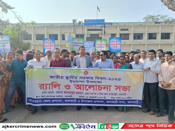 ঝালকাঠি প্রতিনিধি :ঝালকাঠি জেলা প্রশাসকের কার্যালয়ে প্রঙ্গণে মঙ্গলবার ২৪ ফেব্রুয়ারি সকালে স্থানীয় সরকার দিবস-২০২৫ উদযাপন উপলক্ষে বর্ণাঢ্য র্যালি ও আলোচনা সভার আয়োজন করা হয়।