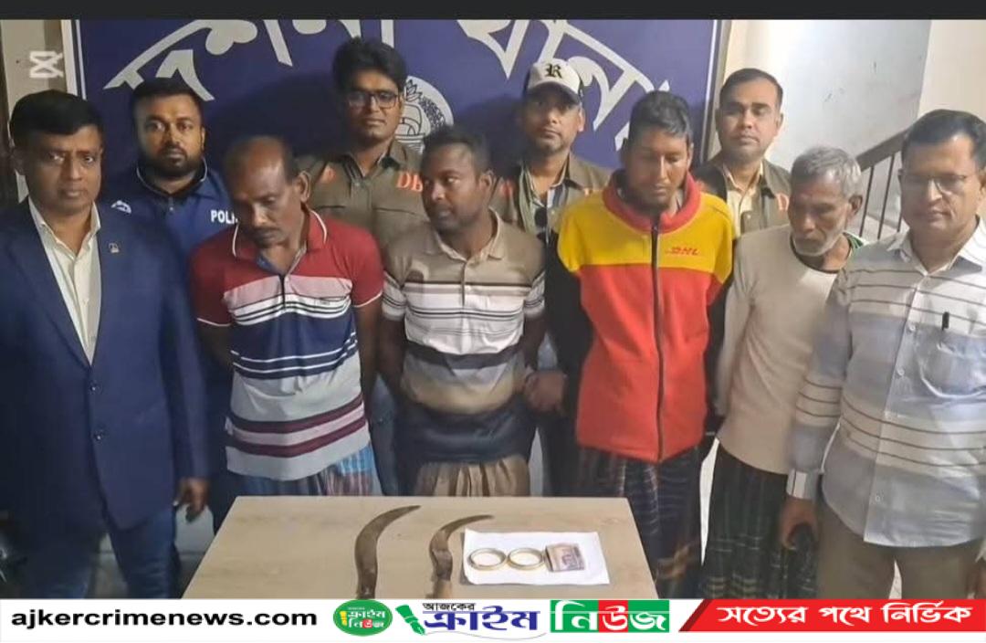 স্বামীকে কুপিয়ে স্ত্রীর গহনা ছিনতাই এর ঘটনার কয়েক ঘন্টার মাথায় পুলিশ ৪ ছিনতাই কারীর কাছে থাকা লুণ্ঠিত মালামালসহ ছিনতাই কাজে ব্যবহৃত ২টি হাসুয়া ও মোটরসাইকেল উদ্ধার করা করেছে।