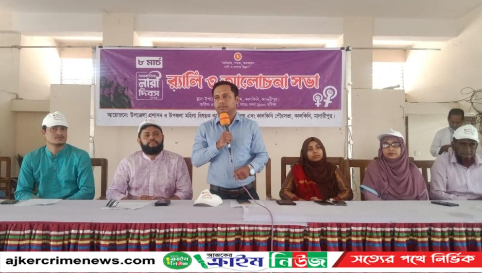 আন্তর্জাতিক নারী দিবস ২০২৫ উপলক্ষে মাদারীপুরের কালকিনিতে উপজেলা প্রশাসনের ও উপজেলা মহিলা বিষয়ক কর্মকর্তার এর উদ্যেগে কালকিনি পৌরসভার আয়োজনে দিবসটি পালন করা হয়।
