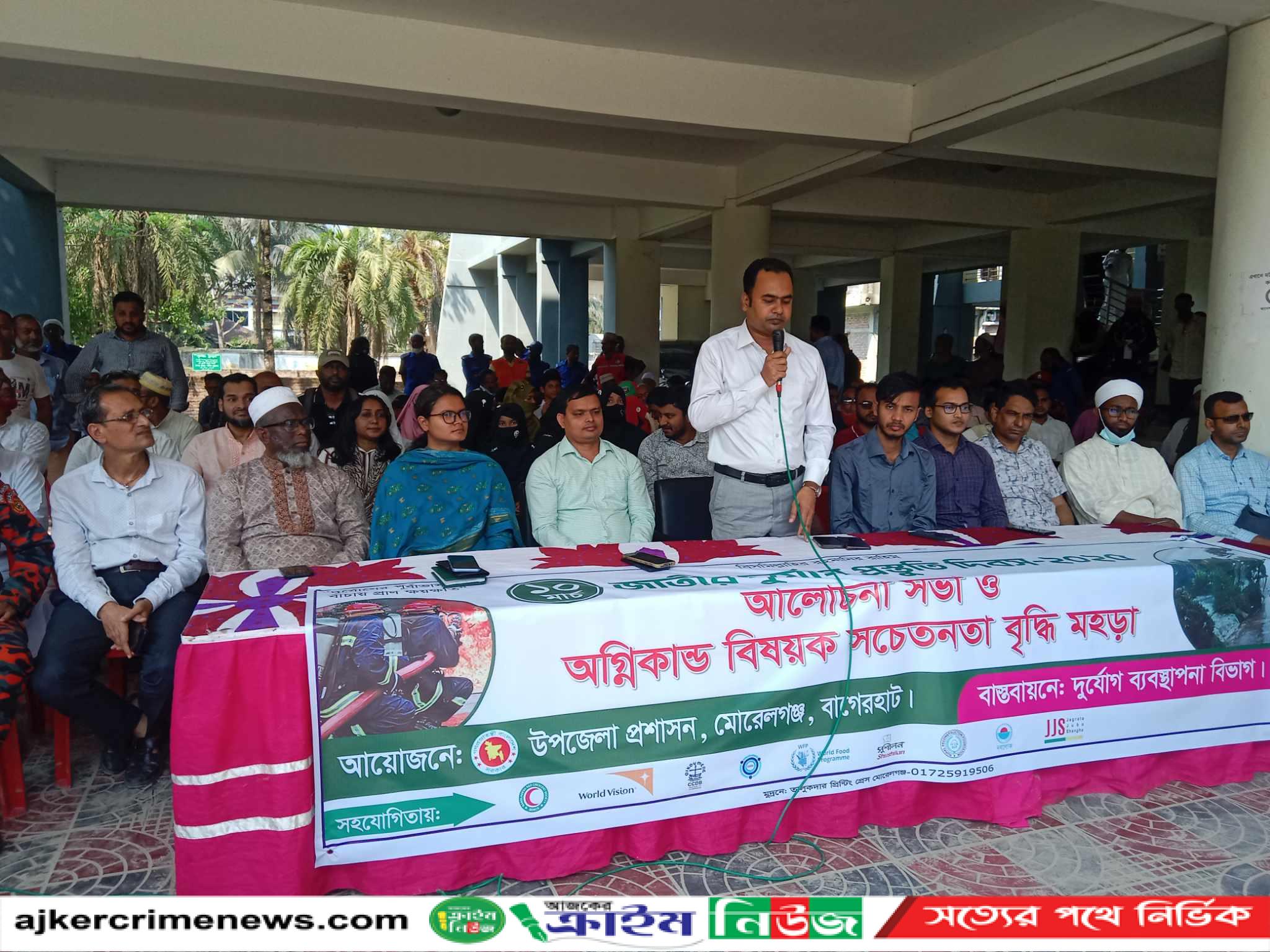 এস.এম. সাইফুল ইসলাম কবির, বাগেরহাট:জাতীয় দুর্যোগ প্রস্তুতি দিবস ২০২৫ উপলক্ষে বাগেরহাটের মোরেলগঞ্জে আলোচনা সভা ও মহড়া অনুষ্ঠিত হয়েছে। দিবসটি উপলক্ষে মঙ্গলবার বেলা ১১ টার দিকে উপজেলা পরিষদ চত্বরে ফায়ার সার্ভিস কর্মীদের অংশ গ্রহনে মহড়া অনুষ্ঠিত হয়। পরে অনুষ্ঠিত আলোচনা সভায় সভাপতিত্ব করেন উপজেলা নির্বাহী কর্মকর্তা মো. হাবিবুল্লাহ।