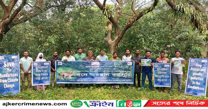 ২১ মার্চ শুক্রবার সকালে আন্তর্জাতিক বন দিবস উপলক্ষে বাগেরহাটের মোংলা সরকারি কলেজের ম্যানগ্রোভ বনে সুন্দরবনে বিষ দিয়ে মাছ নিধন ও হরিণ শিকারসহ সকল বন্যপ্রাণী হত্যা বন্ধ এবং বনবিনাশী প্রকল্প বাতিলের দাবিতে অবস্থান কর্মসুচি পালিত হয়। ধরিত্রী রক্ষায় আমরা (ধরা), সুন্দরবন রক্ষায় আমরা, পশুর রিভার ওয়াটারকিপার ও সার্ভিস বাংলাদেশ’র আয়োজনে এ অবস্থান কর্মসুচি পালিত হয়।
