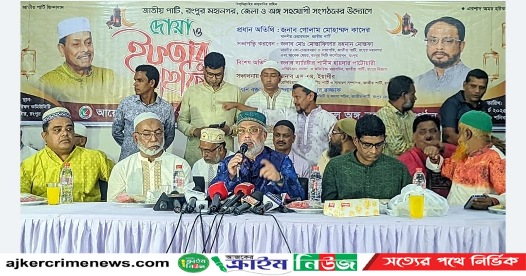 শনিবার (২২ মার্চ) সন্ধ্যায় রংপুর জেলা পরিষদ কমিউনিটি সেন্টার মিলনায়তনে মহানগর ও জেলা জাতীয় পার্টি আয়োজিত আলোচনা সভা ও ইফতার মাহফিল শেষে তিনি সাংবাদিকদের এসব কথা বলেন।