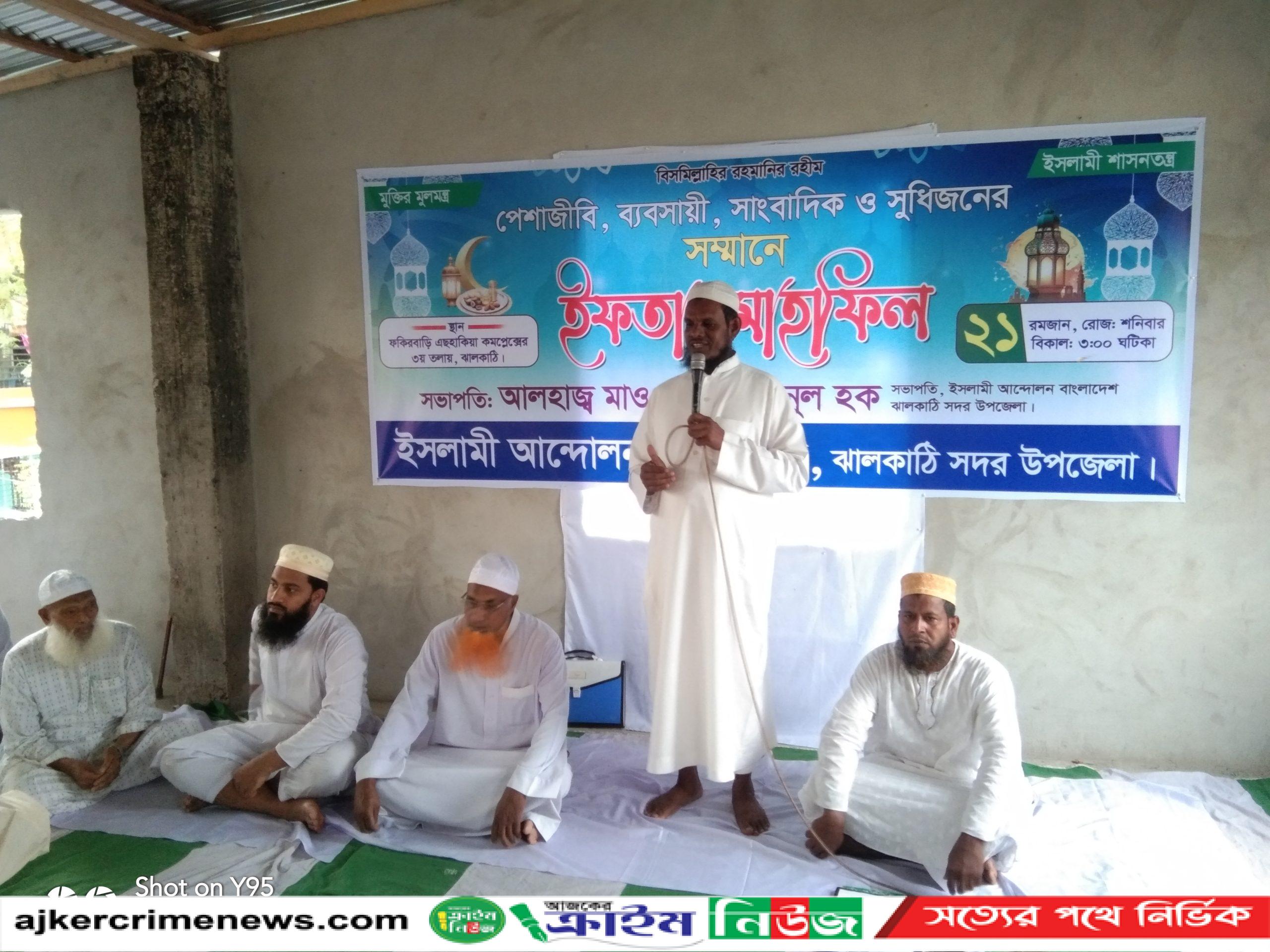 ঝালকাঠি প্রতিনিধি : ঝালকাঠি সদর উপজেলা ইসলামী আন্দোলন বাংলাদেশ এর উদ্যোগে শনিবার ২২শে মার্চ শহরের ফকির বাড়ি এলাকার এছহাকিয়া কমপ্লেক্সে এর ৩য় তলায় পেশাজীবি,ব্যবসায়ী,সাংবাদিক ও সুধিজনের সম্মানে ইফতার মাহফিল অনুষ্ঠিত হয়েছে।