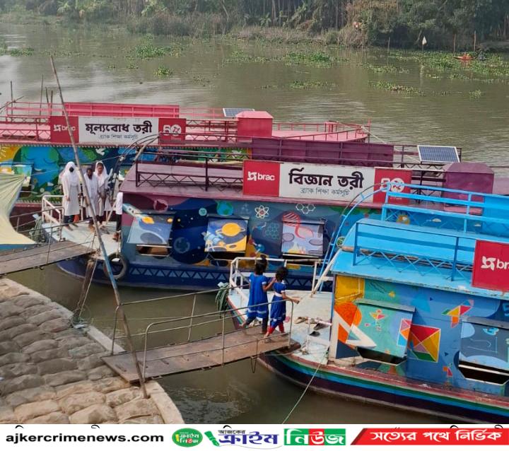 রাহাদ সুমন, বিশেষ প্রতিনিধি॥ ॥ বরিশালের বানারীপাড়া উপজেলার প্রত্যন্ত জনপদ বিশারকান্দি ইউনিয়নে সন্ধ্যা নদীর শাখা নদীতে ভাসছে ব্র্যাকের শিক্ষা তরী। ওই ইউনিয়নের চৌমোহনা বাজারের অদূরে নোঙর করা ভাসমান স্টিলবডির কয়েকটি নৌকা। নৌকার ভেতর স্কুল। নানা উপকরণ দিয়ে সাজানো এসব তরী। পাঠদানের পাশাপাশি মনোরম প্রাকৃতিক পরিবেশ আনন্দ-বিনোদনের মধ্যে লেখাপড়া। সম্পূর্ণ বিনা খরচে যতœ সহকারে কোমলমতি শিশুদের পড়ানো হয়। ফ্রি দেওয়া হয় বই, খাতা ও কলমসহ নানা শিক্ষা উপকরণ। ব্র্যাকের শিক্ষাতরীতে শিক্ষার এমন পরিবেশে পড়াশোনা করতে কার মন না চায়। প্রাথমিক ও মাধ্যমিক স্তরের শিক্ষার্থীদের বিজ্ঞান,গণিত,মূল্যবোধ ও শিষ্টাচার শিক্ষার উদ্দেশ্যে ব্র্যাকের এই শিক্ষা কর্মসূচি পরিচালিত হচ্ছে। শিশুদের উপযোগী নানা শিক্ষা উপকরণ দিয়ে সাজানো প্রতিটি তরী। তরীগুলো মনে হয় এ যেন এক একটি সাজানো বিদ্যালয়। শিক্ষাতরীতে শিক্ষার্থীদের জন্য আছে টয়লেটের সুব্যবস্থা। স্টিলবডির তরীতে রয়েছে বোট রিং। যাতে শিশুরা পানিতে পড়ে গেলে এটা ধরে জীবন রক্ষা করতে পারে। শিক্ষার্থীরা বিভিন্ন সহজ উপকরণের মাধ্যমে গণিত,বিজ্ঞান,মূল্যবোধ ও শিষ্টাচার শিখতে পারে এসব তরীতে। প্রতিটি নৌকায় একজন শিক্ষকের তত্ত্বাবধানে একত্রে প্রায় ৩০ জন শিক্ষার্থী ক্লাস করতে পারে। রমজান মাসে স্কুল বন্ধ থাকায় ব্র্যাকের এ ভাসমান শিক্ষা তরীতে প্রতিদিন সকালে ২ ঘন্টা করে নানা বিষয় শিখতে পারছে নদীর তীরবর্তী ওই এলাকার কোমলমতি শিক্ষার্থীরা। জানা গেছে, দেশের হাওর,দ্বীপ,চর ও দুর্গম এলাকায় এসব ভাসমান শিক্ষা তরীতে ১০ থেকে ১৪ দিনব্যাপী শিক্ষা কর্মসূচি পরিচালিত হয়। হাওরাঞ্চলে পর্যাপ্ত স্কুল না থাকার কারণে বর্ষা মৌসুমে ছোট নৌকায় হাওর পাড়ি দিয়ে শিক্ষার্থীদের জীবনের ঝুঁকি নিয়ে স্কুলে পাঠাতে অভিভাবকরা ভয় পান। এছাড়াও রয়েছে নানান সমস্যার কারণে হতদরিদ্র, দিনমজুর ও অসহায় পরিবারের শিশুদের শিক্ষা গ্রহণ থেকে বঞ্চিত হওয়া। ব্র্যাকের ভাসমান শিক্ষাতরীতে শিক্ষার সুফল পেয়েছে হাওরাঞ্চলে হতদরিদ্র শিশুরা। মূলত ঝরে পড়া শিশুদের শিক্ষার আওতায় আনতে চালু হয়েছিল নৌকায় এ শিক্ষাতরী। এই শিক্ষাকর্যক্রম পূর্বে (২০১১-১৮) পর্যন্ত বাহিরের দেশের অর্থায়নে চললেও এখন ব্র্যাকের নিজস্ব অর্থায়নে চলমান। বানারীপাড়ায় ভাসমান এ শিক্ষা তরী নতুন এক অভিজ্ঞতা। বিশেষ করে শিশু শিক্ষার্থীরা ভাসমান তরীতে ব্যতিক্রমধর্মী শিক্ষা নিতে পেরে দারুন উচ্ছ্বসিত। শিক্ষার্থীরা জানায়, নৌকায় শিক্ষা গ্রহণ তাদের খুব ভাল লাগে। শিক্ষা সামগ্রী পেয়েও তারা খুশি। এদিকে অভিভাবকরাও বিষয়টি ইতিবাচকভাবে দেখে তাদের সন্তানদের উৎসাহ নিয়ে ভাসমান 