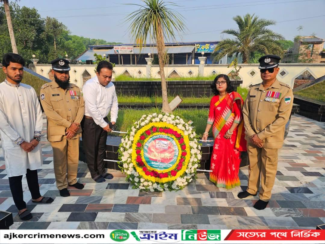 পুষ্পমাল্য অর্পণে নিজ নিজ প্রতিষ্ঠানের নেতৃত্ব দেন চুয়াডাঙ্গা জেলা প্রশাসক মোঃ জহিরুল ইসলাম, চুয়াডাঙ্গা পুলিশ সুপার খন্দকার গোলাম মওলা বিপিএল,দামুড়হুদায় উপজেলা নির্বাহী অফিসার তিথী মিত্র,