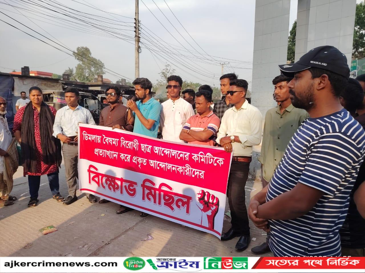 কৃষক, শ্রমিকসহ বিভিন্ন শ্রেণি-পেশার মানুষ ছিলেন মনে করিয়ে দিয়ে তা কারো বাপ-দাদার একক সম্পত্তি নয় বলেও সাফ জানিয়ে দেন তারা।এ সময় তারা বলেন,প্রকৃত ছাত্র আন্দোলনের আদর্শের সাথে বেঈমানি করে গত ৩ এপ্রিল দেয়া বৈষম্য বিরোধী ছাত্র আন্দোলন ডিমলা উপজেলার চারশত সদস্যের ভুয়া কমিটি তারা কোনোভাবেই মেনে নেবেন না।ইতিমধ্যে প্রহসনের সেই কমিটিতে নাম থাকা অনেকেই ধিক্কার জানিয়ে স্বেচ্ছায় পদত্যাগ করে সামাজিক যোগাযোগ মাধ্যম ফেসবুকে পোস্ট দিয়েছেন।প্রকৃত আন্দোলনকারীদের সঙ্গে বিশ্বাস ঘাতকতা করে এই কমিটি করা হয়েছে বলে দাবি করে তারা আরও বলেন, আমাদের রক্ত, ঘাম ঝড়িয়ে আদায় করা আন্দোলনকে পুঁজি করে কেউ যদি ব্যক্তি স্বার্থ হাসিলের চেষ্টা করে তাহলে তাদের বিরুদ্ধে কঠোর প্রতিরোধ গড়ে তোলা হবে। প্রকৃত ছাত্র নেতৃত্বের অধীনে আন্দোলন চালিয়ে যাওয়ার প্রত্যয় ব্যক্ত করে তারা দ্রুততম সময়ের মধ্যে এই ভুয়া কমিটি বাতিল করতে বৈষম্য বিরোধী ছাত্র আন্দোলনের কেন্দ্রীয় নেতাদের হস্তক্ষেপ কামনার পাশাপাশি বৈষম্য বিরোধী ছাত্র আন্দোলনের নেতা পরিচয়দানকারী চাঁদাবাজদের প্রশ্রয় না দিতে প্রশাসনসহ সকলকে আহ্বান জানান।