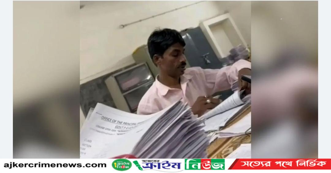 শিক্ষার্থীদের পরীক্ষার খাতা দেখছেন কলেজের চতুর্থ শ্রেণির এক কর্মচারী। চাঞ্চল্যকর এই ঘটনাটি ঘটেছে ভারতের মধ্যপ্রদেশের পিপারিয়া শহরের শহীদ ভগত সিং সরকারি কলেজে। এই ঘটনায় শোরগোল পড়ে গেছে।