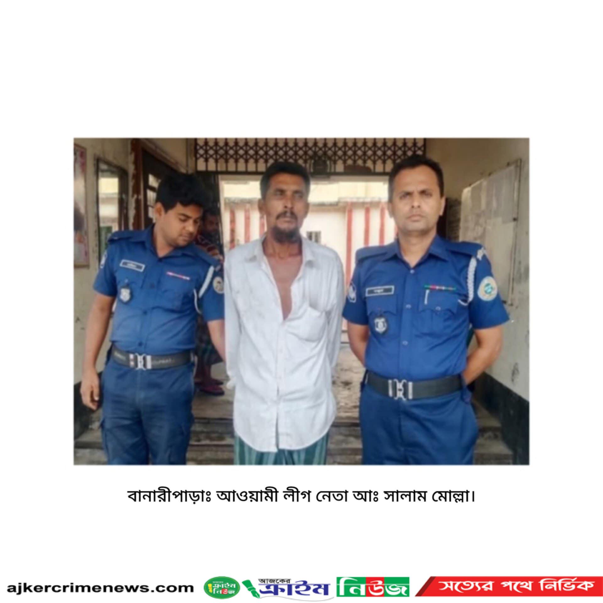বরিশালের বানারীপাড়া উপজেলার সৈয়দকাঠি ইউনিয়নের করপাড়া গ্রামের ৭ নম্বর ওয়ার্ড আওয়ামী লীগের সভাপতি আঃ সালাম মোল্লাকে প্রতিপক্ষরা আটক করে পুলিশের হাতে তুলে দিয়েছে। বৃহস্পতিবার ( ১৭ এপ্রিল) সকালে আওয়ামী লীগ নেতা সালাম মোল্লাকে বানারীপাড়া বন্দরের মাছ বাজারে দেখতে পেয়ে তার এলাকার প্রতিপক্ষের লোকজন আটক করে থানা পুলিশকে খবর দেয়। এসময় তাকে মারধরেরও অভিযোগ পাওয়া গেছে। খবর পেয়ে পুলিশ ঘটনাস্থল থেকে তাকে বানারীপাড়া থানায় নিয়ে যায়। থানায় তার বিরুদ্ধে কোন মামলা না থাকায় দুপুরে ১৫১ ধারায় তাকে বরিশাল জেলহাজতে পাঠানো হয়। এ প্রসঙ্গে বানারীপাড়া থানার অফিসার ইনচার্জ (ওসি) মোঃ মোস্তফা বলেন, আওয়ামী লীগ নেতা সালাম মোল্লাকে বানারীপাড়া পৌর শহরের মাছ বাজারে লোকজন আটক করে থানা পুলিশকে খবর দেয়। তাকে সেখান থেকে থানায় এনে ১৫১ ধারায় বরিশাল আদালতে পাঠানো হয়েছে। ####