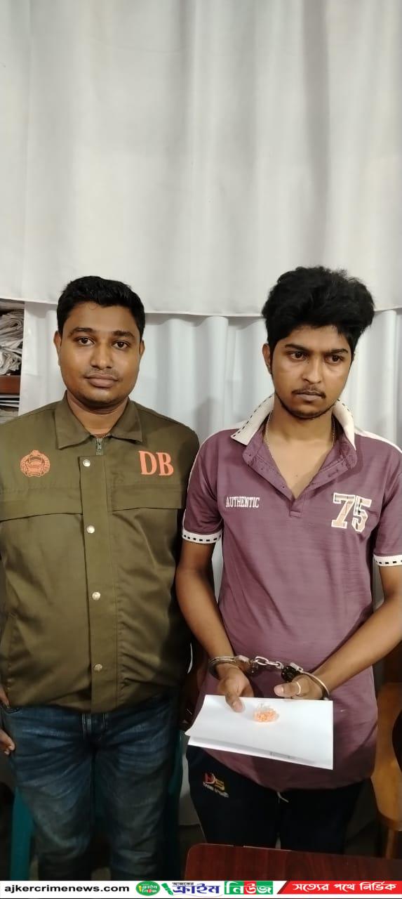 আটককৃত মাদক ব্যবসায়ী বিনয়কাঠি ইউনিয়নের উত্তর মানপাশা গ্রামের সুকেন সিকদারের ছেলে বিপ্লব সিকদার।