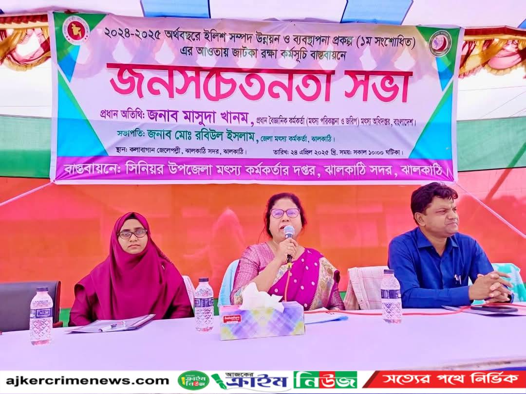 ঝালকাঠি প্রতিনিধি :২০২৪-২০২৫ অর্থবছরে ইলিশ সম্পাদ উন্নয়ন ও ব্যবস্থাপনা প্রকল্প ( ১ সংশোধিত)এর আওতায় জাটকা রক্ষা কর্মসূচি বাস্তবায়নে ঝালকাঠিতে ২৫ শে এপ্রিল বৃহস্পতিবার সকালে শহরের কলা বাগান জেলে পল্লীতে জনসচেতনতা সভা অনুষ্ঠিত হয়।