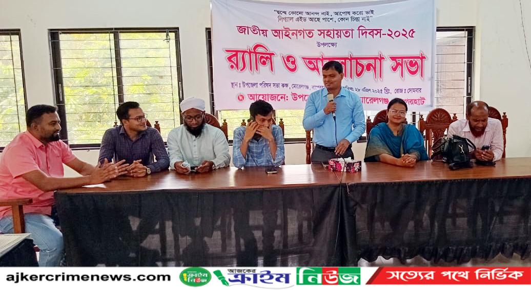 এস.এম. সাইফুল ইসলাম কবির,বাগেরহাট:বাগেরহাটের মোরেলগঞ্জে জাতীয় আইন সহায়তা দিবস উপলক্ষে র্যালী ও আলোচনা সভা অনুষ্ঠিত হয়েছে। সোমবার বেলা ১১ টায় উপজেলা প্রশাসনের আয়োজনে দিবসটি উপলক্ষে উপজেলা চত্বর থেকে একটি র্যালী বের হয়ে বিভিন্ন সড়ক প্রদক্ষিণ করে। পরে সভাকক্ষে আলোচনা সভায় সভাপতিত্ব করেন সহকারি কমিশনার (ভূমি) ও ভারপ্রাপ্ত উপজেলা নির্বাহী অফিসার মো. বদরুদ্দোজা।