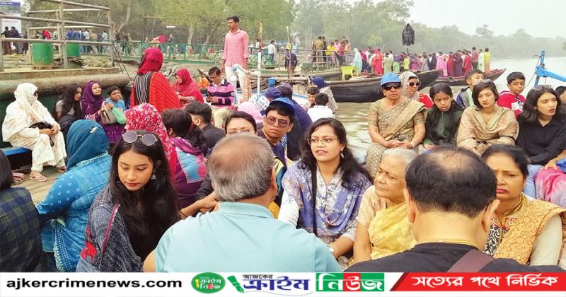এস.এম. সাইফুল ইসলাম কবির,সুন্দরবন থেকে ফিরে:৩ দিনের সরকারি ছুটিতে বাগেরহাটের দু’টি বিশ্ব ঐতিহ্য ষাটগম্বুজ মসজিদ ও সুন্দরবনসহ বিভিন্ন দর্শনীয় স্থানে পর্যটকদের ঢল নেমেছে। ৩ দিনের সরকারি ছুটিতে ৩দিনে বৃহস্পতিবার(১ মে ) ও শনিবার (৩ মে) থেকেই সুন্দরবনের বিভিন্ন পর্যটন স্পটে পর্যটকদের উপচেপড়া ভিড় দেখা গেছে। চোখ জুড়ানো, শিহরন জাগানো অরণ্য সুন্দরবন। রয়েল বেঙ্গল টাইগারের সুন্দরবন। এসব স্থানে ৩ দিনের সরকারি ছুটিতে উপচে পড়ছে মানুষের ঢল। পরিবার-পরিজন নিয়ে নির্মল পরিবেশে সময় কাটাতে পেরে খুশি দর্শনার্থীরা। দেশের বিভিন্ন স্থান থেকে নানা বয়সের পর্যটকরা ৬’শ বছরের ঐতিহ্যবাহী ষাটগম্বুজ মসজিদ ও বিশ্বের বৃহৎ ম্যানগ্রোভ বনের সৌন্দর্য উপভোগ করতে ছুটে আসছেন।সুন্দরের রানি সুন্দরবন ক্ষণে ক্ষণে তার রূপ বদলায়। বলা হয়ে থাকে, সুন্দরবন দিনে চার বার তার রূপ বদলায়, যার সকালে এক রূপ, দুপুরে অন্যরূপ আর পড়ন্ত বিকালে নতুন রূপে উদ্ভাসিত হয়। আর রাতে গহিন অরণ্যের মধ্যে এক ভিন্ন শিহরন তৈরি করে সুন্দরবন। তাছাড়া অমাবস্যায় কিংবা চাঁদনি রাতে নানান রূপে পর্যটকদের কাছে ধরা দেয় সুন্দরবন।বিশ্বের ঐতিহ্যবৃহত্তম ম্যানগ্রোভ সুন্দরবনের মৎস্যভাণ্ডার নামে খ্যাত সুন্দরবনের প্রধান আকর্ষণ রয়েল বেঙ্গল টাইগারওচিত্রল মায়া হরিণের। সাধারণ মানুষের আকর্ষণ ও গুরুত্বের দিক দিয়ে বাঘের পরেই চিত্রল ও মায়া হরিণের অবস্থান।৩ দিনের সরকারি ছুটিতে পর্যটকরা পরিবার-পরিজন নিয়ে ছুটে এসেছেন সুন্দরবনে। ম্যানগ্রোভ, গোলপাতার সুন্দরবন। দেশি-বিদেশি পর্যটকদের প্রধান আকর্ষণ বাংলাদেশের সুন্দরবন। সুন্দরবন বাংলাদেশের গর্ব, বাংলাদেশের রক্ষাকবচও। ঝড়ঝঞ্ঝা নিজের শরীর দিয়ে আটকে দিয়ে পুরো দেশকে রক্ষা করে এই সুন্দরবনই। প্রকৃতির ‘অনিন্দ্যসুন্দর সৌন্দর্য’ কথাটা অবলীলায় শুধু এই বনকে নিয়েই বলা যায়। নদী, খাল ও সমুদ্র আর রহস্যঘেরা বনভূমি এই সুন্দরবনকে আকর্ষণীয় করে তুলেছে। বনের মায়াবী রূপের ভূ-প্রাকৃতিক সৌন্দর্য মুগ্ধতা ছড়ায়, শিহরন জাগায় প্রকৃতিপ্রেমীদের মনে।করমজল, হারবারিয়া, হিরণ পয়েন্ট, কচিখালী ও দুবলার চরসহ বনের প্রতিটি ভ্রমন স্পটে ঘুরে আনন্দ উপভোগ করছেন তারা। একইসাথে বলেশ্বর ও ভৈরব নদীর বাঁধে পর্যটকদের ঢল নেমেছে।