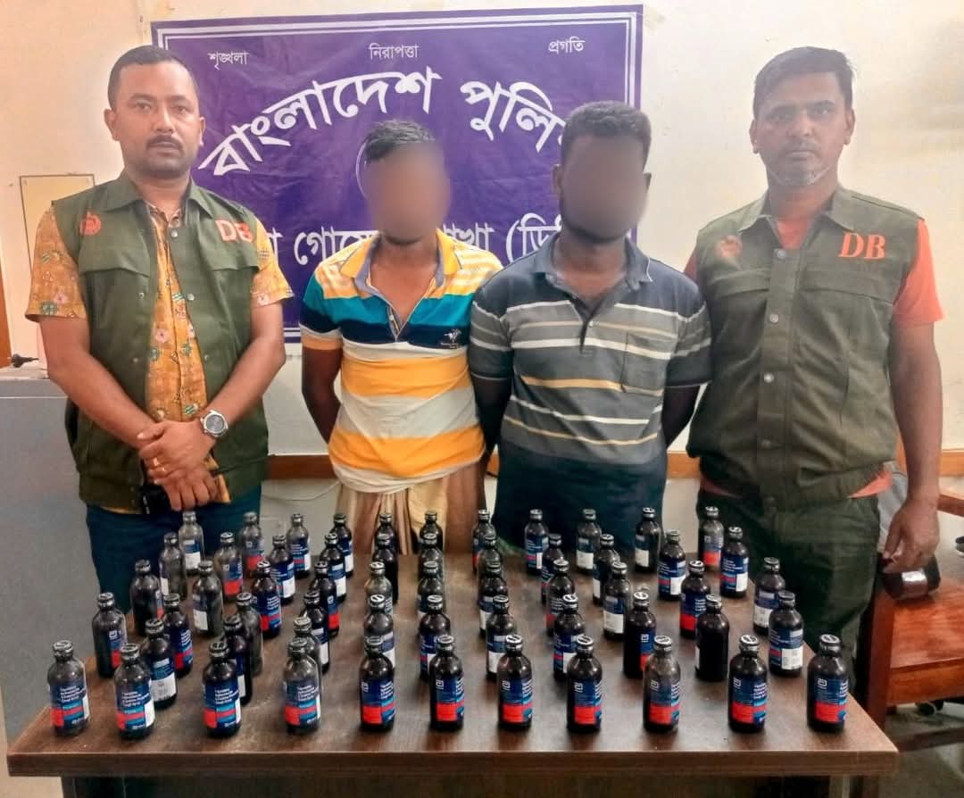শনিবার সকাল সাড়ে ৭ টার দিকে চুয়াডাঙ্গা জেলা গোয়েন্দা শাখার ( ডিবি) এসআই (নিঃ)/ সৌমিত্র সাহা, এএসআই (নিঃ) মোঃ মামুনুর রহমান, এএসআই(নিঃ) মোঃ আবু আল ইমরান সঙ্গীয় অফিসার ও ফোর্স গোপন সংবাদের ভিত্তিতে দামুড়হুদা থানাধীন পুড়াপাড়া মাঠে এক অভিযান চালায়। এসময় দশমী পাড়ার আবেদ আলীর ছেলে মোঃ মামুন আলী (৩৩) ও মৃত শরমন আলীর ছেলে মোঃ রুহুল (৩০) কে গ্রেফতার করে। পরে তাদের হেফাজতে বিশেষ কায়দায় রাখা ৬০ বোতল ভারতীয় ফেনসিডিল উদ্ধার করে। গ্রেফতারকৃত আসামীদের বিরুদ্ধে দামুড়হুদা থানায় মামলা করা হয়েছে।