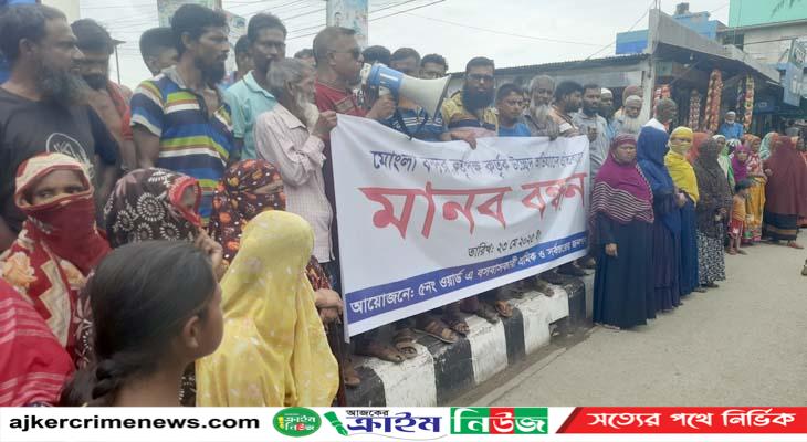 এস. এম. সাইফুল ইসলাম কবির, বাগেরহাট:বাগেরহাটেরমোংলা বন্দরের অবৈধ স্থাপনা উচ্ছেদ নোটিশের প্রতিবাদে বিক্ষোভ মিছিল ও মানববন্ধন অনুষ্ঠিত হয়েছে। উচ্ছেদ ঠেকানোর দাবািতে শুক্রবার সকাল সাড়ে ১০টায় পৌর শহরে বিক্ষোভ মিছিল করে কয়েক’শ শ্রমিক। পরে বেলা ১১টায় পৌর মার্কেট চত্বরে অনুষ্ঠিত হয় মানববন্ধন।