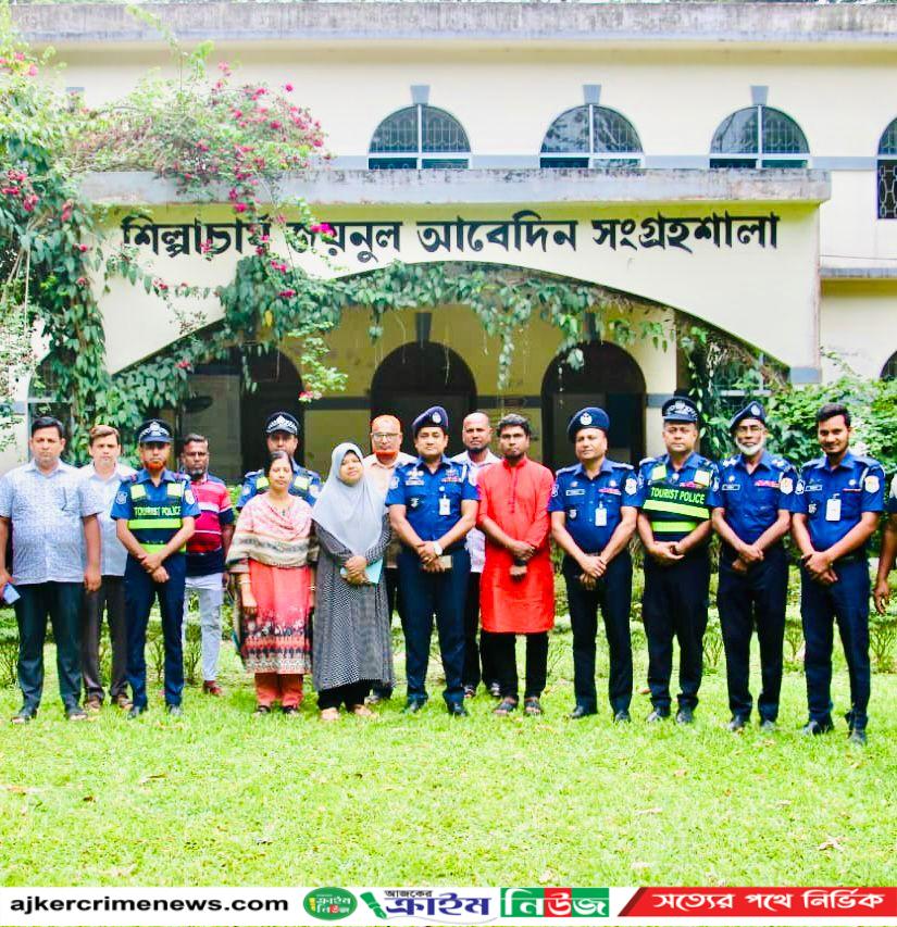 উক্ত সভায় টুরিস্ট পুলিশ সুপার জনাব মোঃ নাইমুল হক পিপিএম, সংগ্রহশালার ইনচার্জ মুকুল দত্ত সহ বিভিন্ন পদবীর কর্মকর্তারা উপস্থিত ছিলেন। টুরিস্ট পুলিশ সুপার জনাব মো: নাইমুল হক পিপিএম শিল্পাচার্য জয়নাল আবেদীনের দুর্লভ শিল্পকর্ম দেখতে সংগ্রহশালায় আগত পর্যটক এবং দর্শনার্থীদের সেবা নিশ্চিত সহ বিভিন্ন দিকনির্দেশনা মূলক বক্তব্য রাখেন। পরবর্তীতে পর্যটক ও দর্শনার্থীদের এবং সংগ্রহশালার কর্মকর্তাদের জন্য টুরিস্ট পুলিশের হেল্পলাইন সম্বলিত কাট আউট প্রদান করা হয়