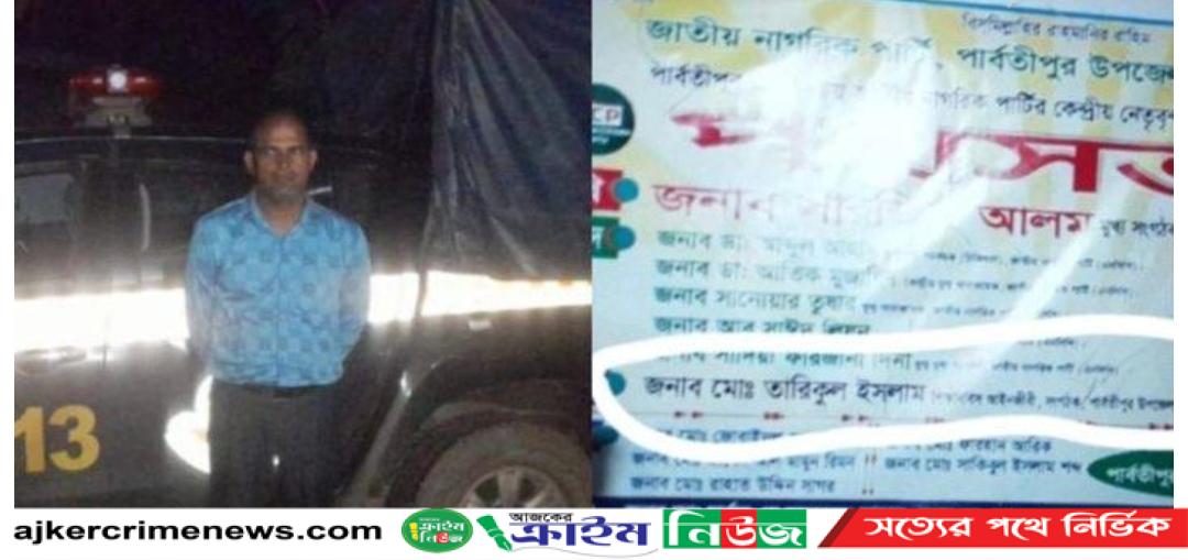 আটক তারিকুল ইসলাম উপজেলার পশ্চিম রাজাবাসর গ্রামের মৃত মাহমুদুল সরকারের ছেলে। তিনি এনসিপির পার্বতীপুরের সংগঠক। জানা গেছে, কিছুদিন আগে বড়পুকুরিয়া কয়লাখনির পরিত্যক্ত মালামাল (স্ক্র্যাব) টেন্ডারের মাধ্যমে পায় সেনাবাহিনীর প্রতিষ্ঠান সেনাকল্যাণ সংস্থা।