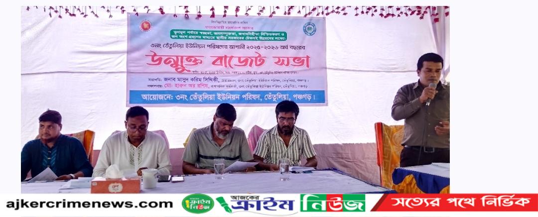 তেঁতুলিয়া (পঞ্চগড়) প্রতিনিধিঃ তৃণমূল পর্যায়ে স্বচ্ছতা, জনসম্পৃক্ততা, জবাবদিহিতা নিশ্চিতকরণ ও জন অংশগ্রহণের মাধ্যমে স্থানীয় সরকারের টেকসই উন্নয়নের লক্ষ্যে তেঁতুলিয়া সদর ইউনিয়নের উন্মুক্ত বাজেট ঘোষণা করা হয়েছে। আগামী ২০২৫-২৬ অর্থ বছরের জন্য ২,৩৬,১৪,৪৯৯/- টাকার বাজেট ঘোষণা করা হয়।