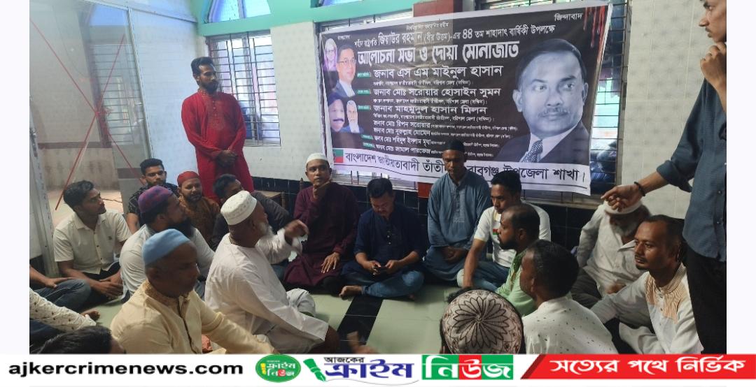 বাবুগঞ্জ (বরিশাল) প্রতিনিধিঃ শহীদ প্রেসিডেন্ট জিয়াউর রহমান এর ৪৪ তম শাহাদাত বার্ষিকী উপলক্ষে বাংলাদেশ জাতীয়তাবাদী তাঁতী দলের আলোচনা সভা ও দোয়া মোনাজাত অনুষ্ঠান অনুষ্ঠিত।