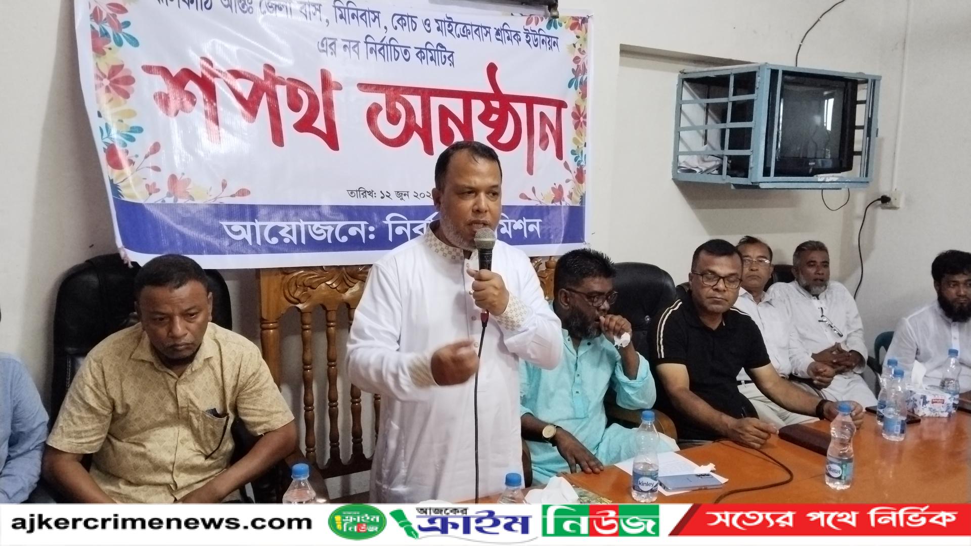 ঝালকাঠি প্রতিনিধি : ঝালকাঠি জেলা আন্ত :জেলা বাস, মিনিবাস, কোচ ও মাইক্রোবাস শ্রমিক ইউনিয়নের নবনির্বাচিত কমিটির সদস্যদের শপথ অনুষ্ঠান বৃহস্পতিবার ১২ জুন বিকেলে বাসস্ট্যান্ড এলাকায় নিজেস্ব কার্যালয়ে অনুষ্ঠিত হয়েছে ।