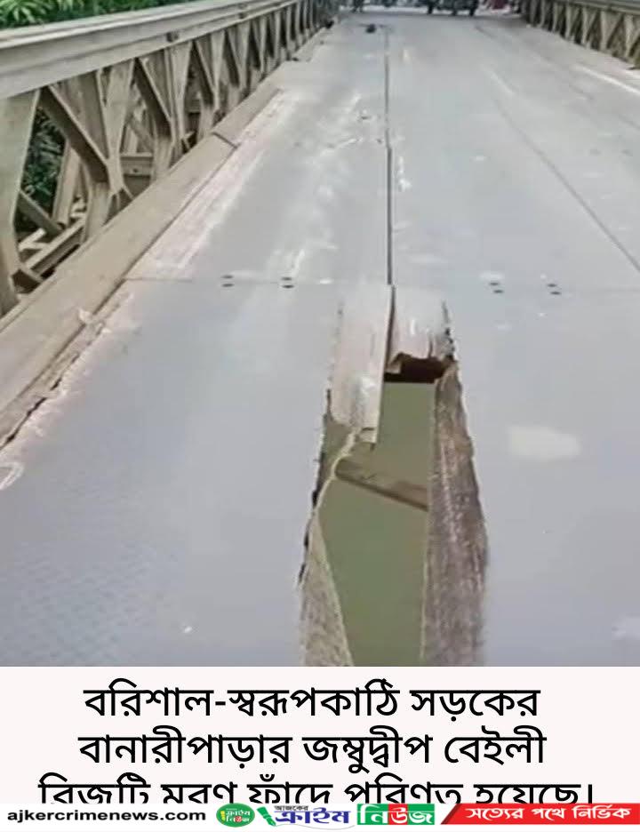 রাহাদ সুমন,বিশেষ প্রতিনিধি॥ বরিশাল-স্বরূপকাঠি সড়কের বানারীপাড়ার জ¤ু^দ্বীপ বেইলী ব্রিজটি মরণ ফাঁদে পরিণত হয়েছে। সম্প্রতি ব্রিজের বেশ কয়েকটি স্থানে স্টিলের পাত ভেঙ্গে,দেবে ও সরে গিয়ে এ মরণ ফাঁদের সৃষ্টি হয়। মঙ্গলবার (১৭ জুন )সন্ধ্যায় ব্রিজের দক্ষিণ প্রান্তের ভেঙ্গে যাওয়া স্টিলের পাতের ফাঁকে স্বরূপকাঠি থেকে আসা রাজধানীগামী কাঠবোঝাই ট্রাকের চাকা আটকে কয়েক ঘন্টা ওই সড়কে যান চলাচল বন্ধ থাকায় চরম জনদূর্ভোগের সৃষ্টি হয়। এছাড়া ওই ব্রিজে প্রায়ই ঘটছে দূর্ঘটনা । এরশাদ জামানায় শেষের দিকে বানারীপাড়ার সন্ধ্যা নদীর শাখা নদীতে জ¤ু^দ্বীপ এলাকায় বৃহৎ আকারের এ বেইলী ব্রিজটি নির্মাণ করা হয়। দীর্ঘদিনেও সংস্কার না হওয়ায় ব্রিজটি ঝুঁিকপূর্ণ হয়ে পড়েছে। যেকোন সময় এ ব্রিজে বড়ধরণের দুর্ঘটনার আশঙ্কা রয়েছে। এ ব্রিজের ওপর দিয়ে পণ্যবাহী ট্রাক, বিশেষ করে ২৫/৩০টন ওজনের কাঠবাহী ট্রাক,ঢাকাগামী পরিবহণ ও অভ্যন্তরীণ যাত্রীবাহী বাসসহ রাত-দিন নানা ধরণের হাজারো যানবাহন চলাচল করে থাকে। পিরোজপুরের স্বরূপকাঠিসহ বিভিন্ন এলাকার মানুষ এ ব্রিজের ওপর দিয়ে রাজধানী,বরিশাল শহর ও বানারীপাড়াসহ দেশের নানা প্রান্তে চলাচল করে থাকেন। স্থানীয়রা অবিলম্বে ব্রিজটি টেকসই সংস্কার কিংবা নতুন গার্ডার ব্রিজ নির্মাণের দাবি জানিয়েছেন। এ প্রসঙ্গে বরিশাল সড়ক ও জনপথ (সওজ) অধিদপ্তরের নির্বাহী প্রকৌশলী মো. নাজমুল ইসলাম জানান, দ্রুত সময়ের মধ্যে ব্রিজটি মেরামত করে চলাচল উপযোগী করা হবে। এছাড়া এখানে গার্ডার ব্রিজ নির্মাণের পরিকল্পনা রয়েছে। ###