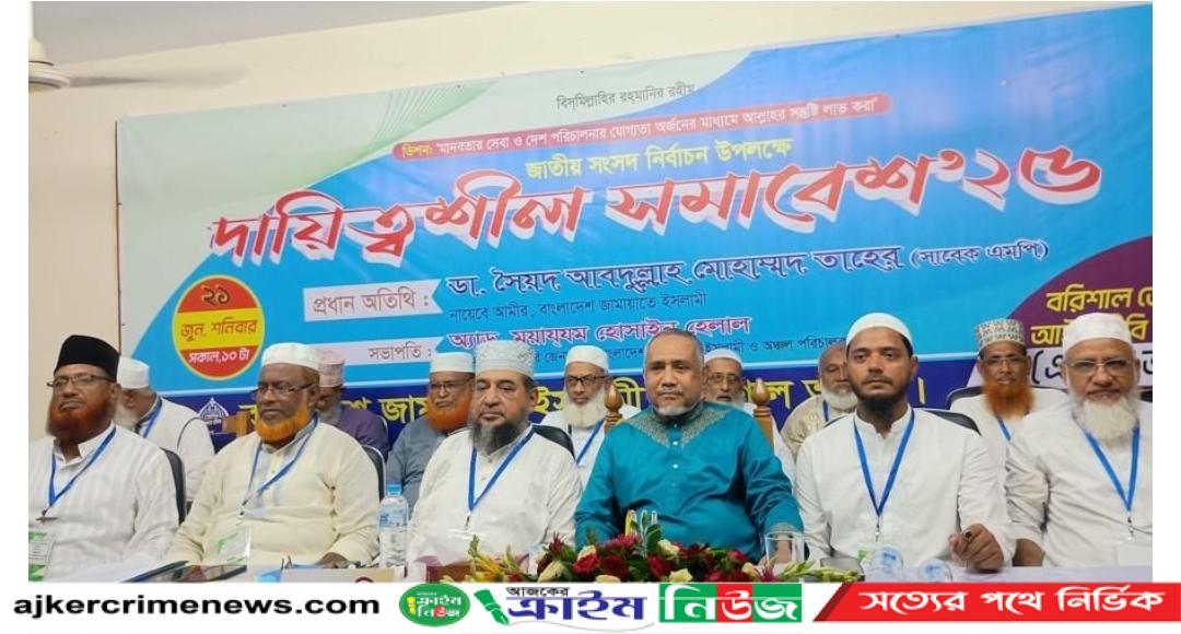 আজকের ক্রাইম ডেক্স::::সুষ্ঠু নির্বাচন আয়োজন করা সরকারের দায়িত্ব। এর জন্য ‘লেভেল প্লেয়িং ফিল্ড’ নিশ্চিত করতে হবে। ষড়যন্ত্রমূলক কোনো নির্বাচন দেশবাসী মেনে নেবে না। আমরা একটি সুষ্ঠু, সুন্দর ও অংশগ্রহণমূলক নির্বাচন চাই। কেউ যদি আবার ভোটারবিহীন নির্বাচনের দিকে আগায়, তাহলে তাদের পরিণতি অতীতের মতোই হবে।” জাতীয় সংসদ নির্বাচন উপলক্ষে বরিশাল বিভাগের ২১ আসনের দায়িত্বশীল সমাবেশে প্রধান অতিথির বক্তব্যে এসব কথা বলেন বাংলাদেশ জামায়াতে ইসলামীর নায়েবে আমীর, সাবেক সংসদ সদস্য ডা. সৈয়দ আবদুল্লাহ মোহাম্মদ তাহের।
