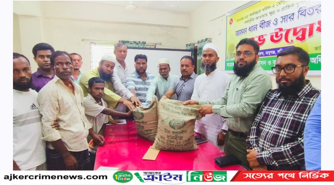 বাবুগঞ্জ উপজেলা প্রশাসন ও উপজেলা কৃষি সম্প্রসারণ অধিদপ্তরের আয়োজনে বুধবার (২৪ জুন) প্রান্তিক কৃষকদের মাঝে বিনামূল্যে বীজ ও সার বিতরণ করা হয়েছে।