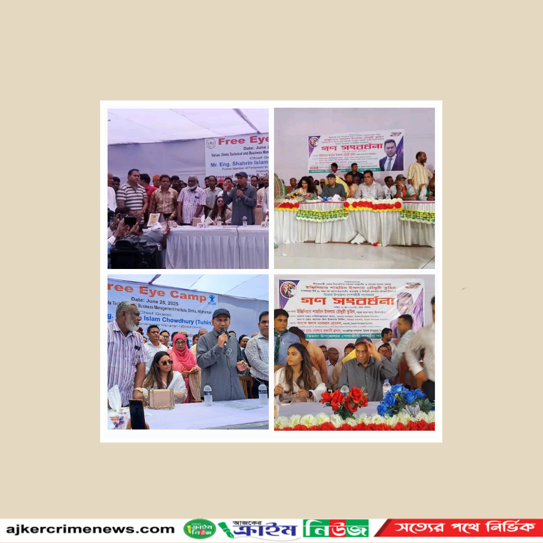 সুজন মহিনুল,বিশেষ প্রতিনিধি।।দীর্ঘ ১৮ বছর পর স্বদেশ প্রত্যাবর্তন ও কারামুক্তির পর নীলফামারীর ডিমলায় বিএনপির চেয়ারপারসন বেগম খালেদা জিয়ার ভাগ্নে,নীলফামারী-১(ডোমার-ডিমলা)আসনের সাবেক সংসদ সদস্য,বিএনপির কেন্দ্রীয় কার্যনির্বাহী কমিটির সদস্য এবং নীলফামারী জেলা বিএনপির সাবেক সভাপতি আলহাজ্ব ইঞ্জিনিয়ার শাহরিন ইসলাম চৌধুরী তুহিনকে গণ সংবর্ধনা ও বিনামূল্যে চক্ষু চিকিৎসা সেবা প্রদাণ করা হয়েছে।শনিবার(২৮ জুন)বিকেলে পেশাজীবি সংগঠনের আয়োজনে সদরে অবস্থিত ইসলামিয়া কলেজ মিলনায়তনে গণ সংবর্ধনা দেয়া হয়।এ সময় উপজেলা বিএনপির সভাপতি অধ্যক্ষ মনোয়ার হোসেনের সভাপতিত্বে ও সাংগঠনিক সম্পাদক গোলাম রব্বানী প্রধানের সঞ্চালনায় বিশেষ অতিথি হিসেবে উপস্থিত ছিলেন,উপজেলা বিএনপির সাধারণ সম্পাদক বদিউজ্জামান রানা,সহ-সভাপতি আরিফ-উল ইসলাম লিটন।এর আগে সকালে ডিসট্রেসড চিলড্রেন এন্ড ইনফ্যান্টস ইন্টারন্যাশনাল(ডিসিআই)রাইটস এন্ড সাইট ফর চিলড্রেন(আরএসসি)এর আয়োজনে ডিমলা বিএমআই কলেজ মাঠে দিনব্যাপী বিনামুল্যে চক্ষু চিকিৎসা সেবা ক্যাম্পের আনুষ্ঠানিক উদ্বোধন করেন আলহাজ্ব ইঞ্জিনিয়ার শাহরিন ইসলাম চৌধুরী তুহিন।কয়েক শতাধিক মানুষকে বিনামূল্যে চক্ষু চিকিৎসা প্রদান করেন মরিয়ম চক্ষু হাসপাতাল সৈয়দপুর। এসময় জেলা-উপজেলা ও ইউনিয়ন-ওয়ার্ড পর্যায়ের বিএনপির অঙ্গ সংগঠনের নেতৃবৃন্দ উপস্থিত ছিলেন।
