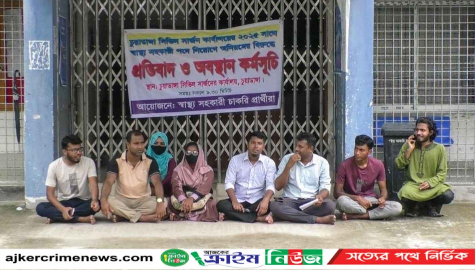চুয়াডাঙ্গায় স্বাস্থ্য সহকারী নিয়োগ পরীক্ষায় অনিয়মের অভিযোগ তুলে চাকুরী প্রার্থীরা সিভিল সার্জন কার্যালয়ের সামনে মানববন্ধন ও অবস্থান কর্মসূচি পালন করেছেন।