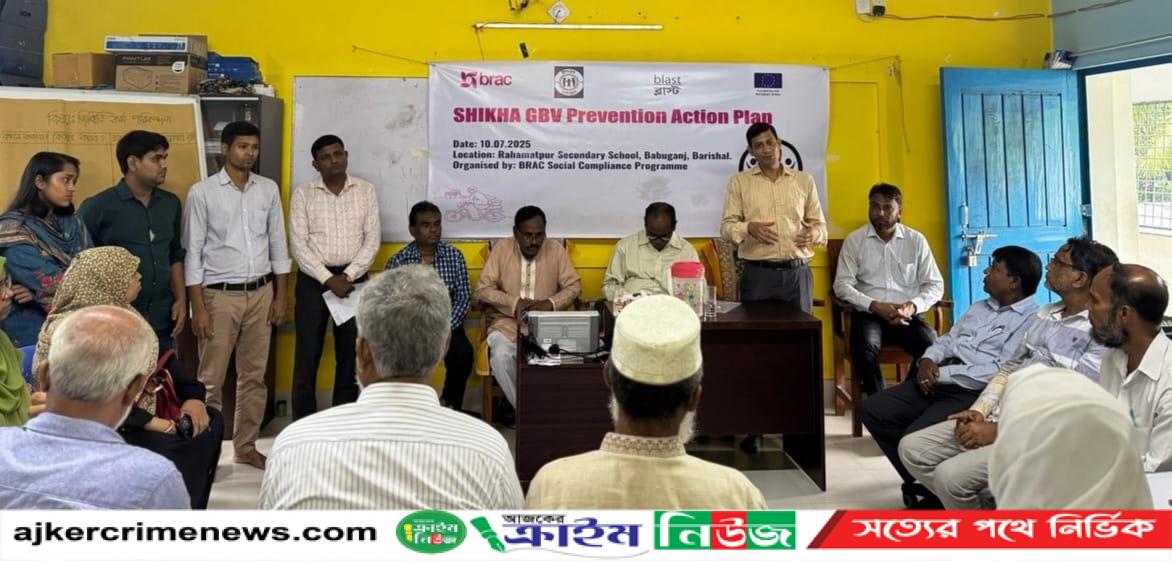 বাবুগঞ্জ প্রতিনিধিঃ ব্র্যাক শিখা প্রকল্পের আওতাধীন কর্ম এলাকা বরিশালের বাবুগঞ্জ উপজেলার, রহমতপুর মাধ্যমিক বিদ্যালয়ে। ( জিবিভি ) প্রতিরোধ কর্ম পরিকল্পনা অনুষ্ঠিত হয়। (১০জুলাই, ২০২৫) তারিখ রোজ বৃহস্পতিবার সকাল ১১.০০ ঘটিকার সময়। কর্মপরিকল্পনায় প্রধান অতিথি হিসাবে উপস্থিত ছিলেন বাবুগঞ্জ উপজেলা মাধ্যমিক শিক্ষা অফিসার জনাবা নাসরিন জোবায়েদা আক্তার। বিশেষ অতিথি হিসাবে উপস্থিত ছিলেন বাবুগঞ্জ উপজেলার বিভিন্ন মাধ্যমিক বিদ্যালয় হতে আগত শ্রদ্ধেয় প্রধান শিক্ষক মন্ডলী, সহকারী শিক্ষকগণ এবং স্কুল কমিটির সদস্য ও যৌনহয়রানি প্রতিরোধ কমিটির সদস্যগণ, এবং কর্মপরিকল্পনায় অত্র বিদ্যালয়ের শিক্ষার্থীরা অংশগ্রহণ করেন। উক্ত অনুষ্ঠানের সভাপতিত্ব করেন রহমতপুর মাধ্যমিক বিদ্যালয়ের প্রধন শিক্ষক মহোদয় জনাব অবিনাশ চন্দ্র রায়।