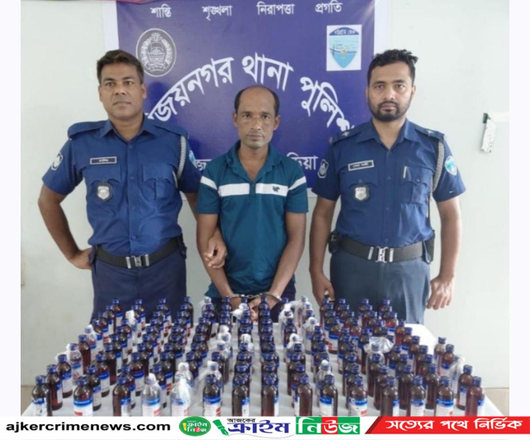 .উক্ত ঘটনাস্থল হইতে গ্রেফতারকৃত আসামী-মোঃ রকিব প্রকাশ রাকিব মিয়া (৩৭), পিতার নাম: মোঃ জনাব আলী, সাং- কাঞ্চনপুর (ইউপি-সিঙ্গারবিল) , থানা- বিজয়নগর, জেলা-ব্রাহ্মণবাড়িয়া’র দখল ও হেফাজত হইতে মাদকদ্রব্য ১৪৫ বোতল স্কপ সিরাপ উদ্ধার করে।