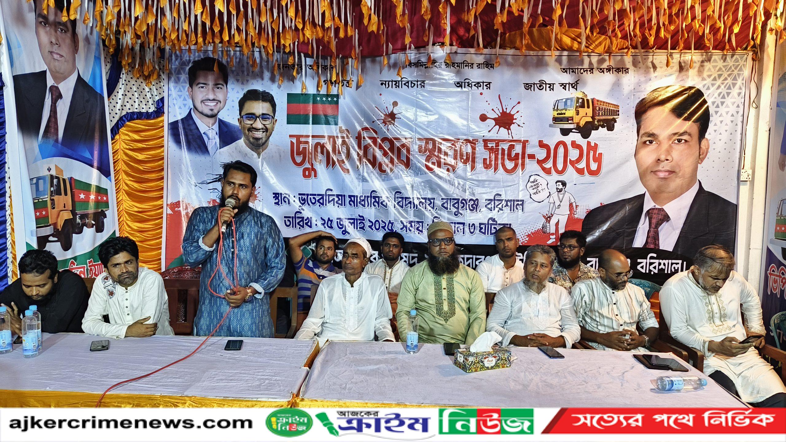 বরিশালের বাবুগঞ্জ উপজেলার কেদারপুর ইউনিয়ন শাখা গণঅধিকার পরিষদের উদ্যোগে “জুলাই বিপ্লব স্মরণসভা ২০২৫” অনুষ্ঠিত হয়েছে। শুক্রবার (২৫ জুলাই) বিকেলে ভূতের দিয়া মাধ্যমিক বিদ্যালয়ের হলরুমে এ অনুষ্ঠানের আয়োজন করা হয়।