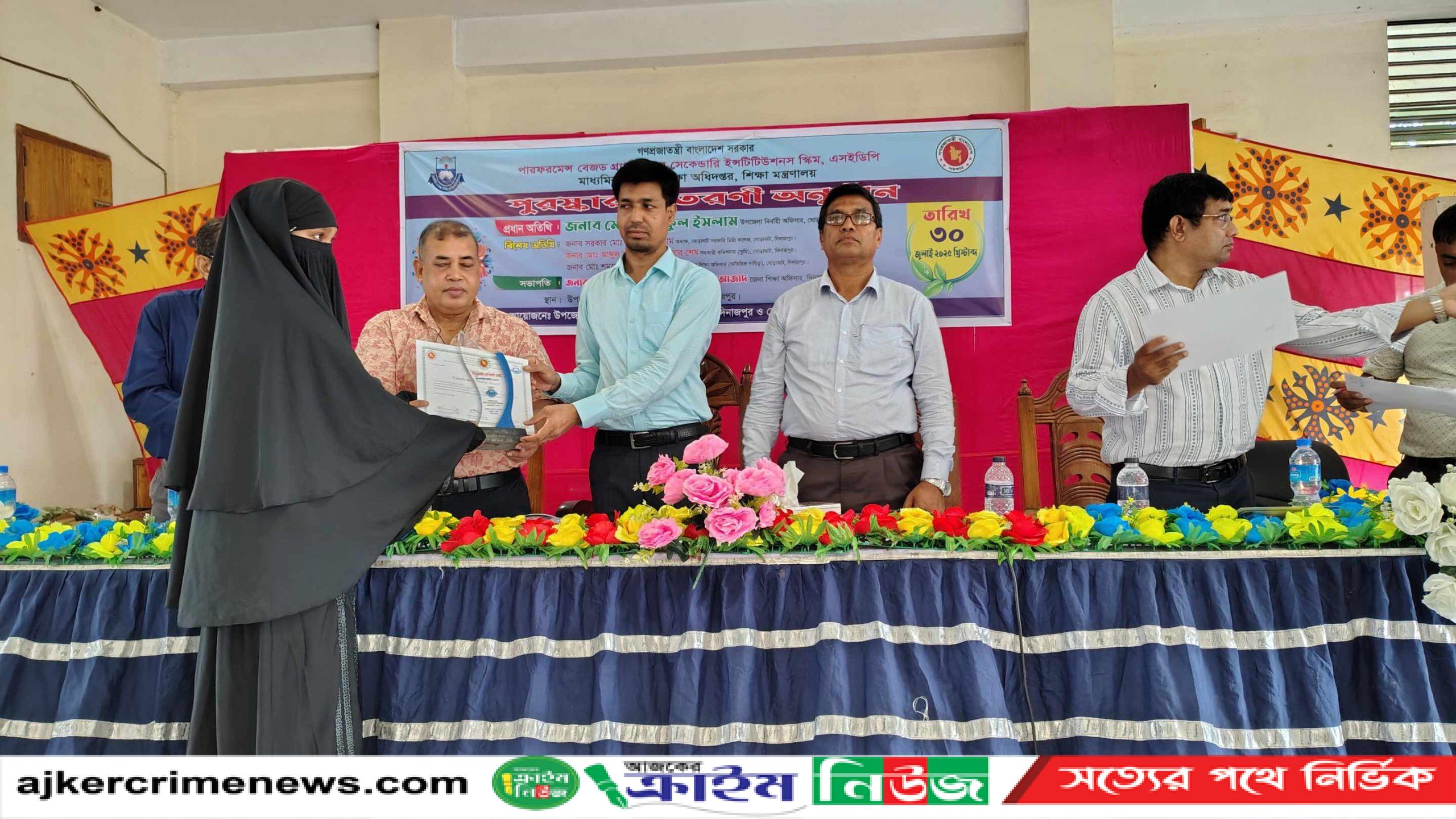 দিনাজপুরের ঘোড়াঘাটে ২০২২ ও ২৩ সালের এসএসসি ও এইচএসসি পরীক্ষায় উত্তীর্ণ কৃতি ৩৫ জন শিক্ষার্থীদের মাঝে এসইডিপি কর্তৃক ক্রেস্ট, সার্টিফিকেট ও পুরষ্কার বিতরণ করা হয়েছে। পারফরম্যান্স বেজড গ্র্যান্টস ফর সেকেন্ডারি ইনস্টিটিউশনস (পিবিজিএসআই) স্কিমের পক্ষ থেকে এ পুরষ্কার বিতরণ করা হয়।