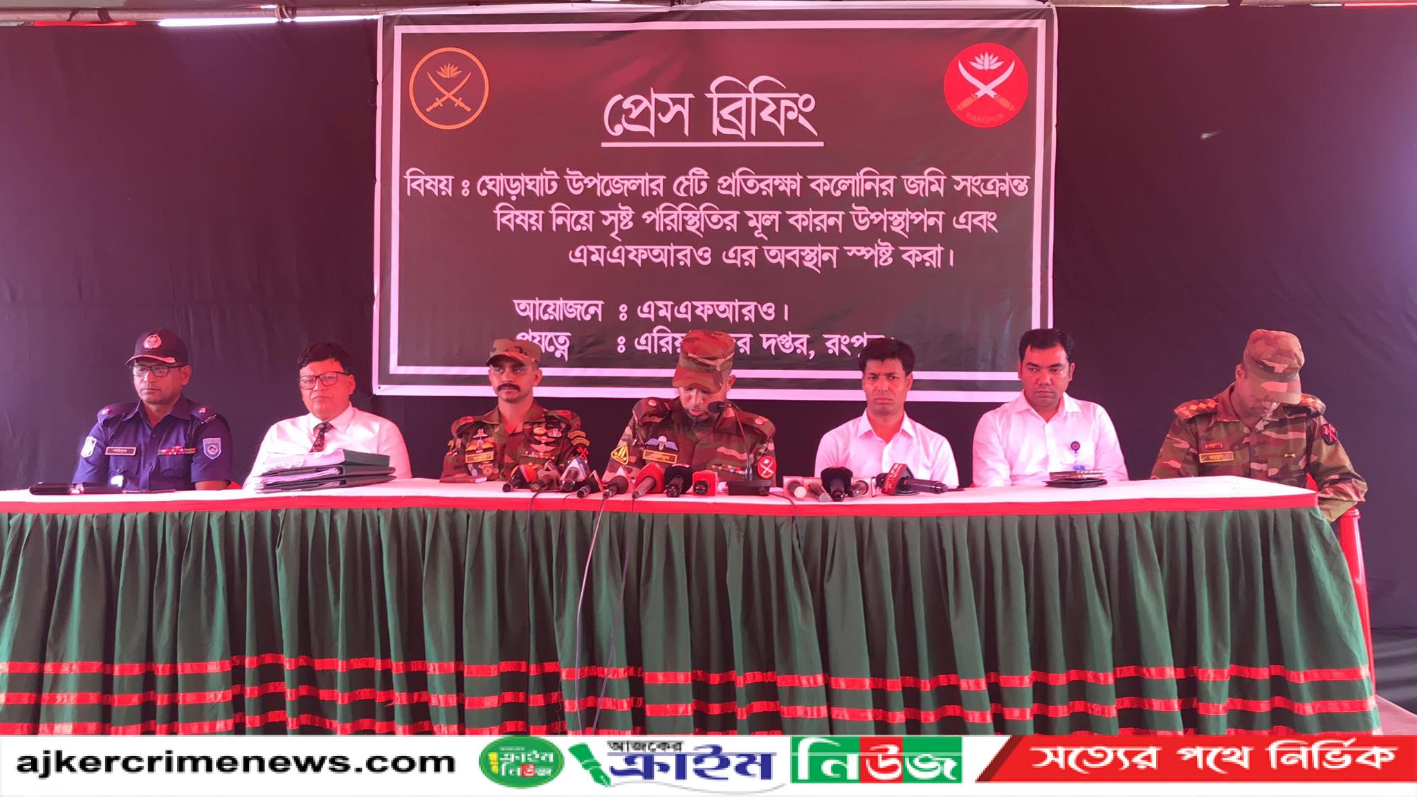 দিনাজপুরের ঘোড়াঘাটে অবস্থিত ৫টি প্রতিরক্ষা কলোনীর জমির চলমান জটিলতা নিয়ে বাংলাদেশ সেনাবাহিনীর সংস্থা এফএমআরও এর প্রেস ব্রিফিং অনুষ্ঠিত হয়েছে।বুধবার (৬ আগস্ট ) দুপুরে ওসমানপুর সেনা ক্যাম্পে রংপুর এরিয়া সদর দপ্তরের তত্ত্বাবধানে ও এমএফআরও এর আয়োজনে প্রেস ব্রিফিং অনুষ্ঠিত হয়।