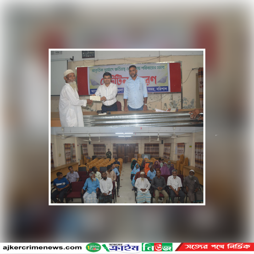 বরিশাল সদর উপজেলা প্রশাসনের আয়োজনে গতকাল যে টিন বিতরণ করেন সদর উপজেলা নির্বাহী কর্মকর্তা ইকবাল হাসান। উক্ত টিন ও নগদ টাকা পেয়ে বরিশাল সদর উপজেলার ৩৪ টি পরিবারের মধ্যে আনন্দ ও উচ্ছ্বাসের ছোঁয়া লেগেছে বলে জানা যায়।