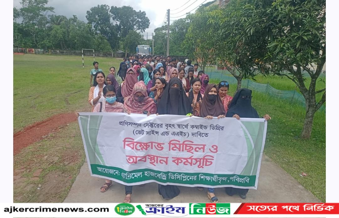 এর আগে কম্বাইন্ড ডিগ্রির দাবিতে সকাল থেকে সব ধরনের ক্লাস বর্জন করে ওই অনুষদের শিক্ষার্থীরা। এসময় পশুপালন অনুষদের লেভেল -৪ প্রথম সেমিস্টার ফাইনাল ইয়ারের শিক্ষার্থী আবদুল্লাহ হিল কাফি বলেন, আমাদের চাকরির পরিসর দিনদিন সংকীর্ণ হয়ে যাচ্ছে। দেশের অনেক প্রাইভেট চাকরিতে আবেদন করতে পারছেন মূলত ভেটেরিনারি অনুষদের শিক্ষার্থীরা অথবা কম্বাইন্ড ডিগ্রিধারীরা। এর ফলে পশুপালন অনুষদ থেকে প্রাপ্ত ডিগ্রির মূল্য কমছে। দেশের অনেক কৃষি বিশ্ববিদ্যালয়ে কম্বাইন্ড ডিগ্রি চালু হওয়ায় এ বৈষম্য আরও বাড়ছে। নাম প্রকাশে অনিচ্ছুক তৃতীয় বর্ষের এক নারী শিক্ষার্থী বলেন, বিসিএস পরীক্ষাতেও আমরা বৈষম্যের শিকার হচ্ছি। কম্বাইন্ড ডিগ্রিধারীরা আমাদের তুলনায় অনেক বেশি পদের জন্য আবেদন করতে পারছেন। এমনকি অনেক পরীক্ষার ভাইভা বোর্ডে আমাদের তুচ্ছতাচ্ছিল্য করা হয়। শুধু তাই নয়, চাকরিতে প্রবেশের পরেও হাতুড়ে ডাক্তারদের কারণে আমাদের পেশাগত মূল্যায়ন কমছে।শিক্ষার্থীরা হুঁশিয়ারি দিয়েছেন, তাদের দাবি মেনে না নেওয়া পর্যন্ত আন্দোলন চলবে এবং ভবিষ্যতে আরও কঠোর কর্মসূচি গ্রহণ করা হবে।