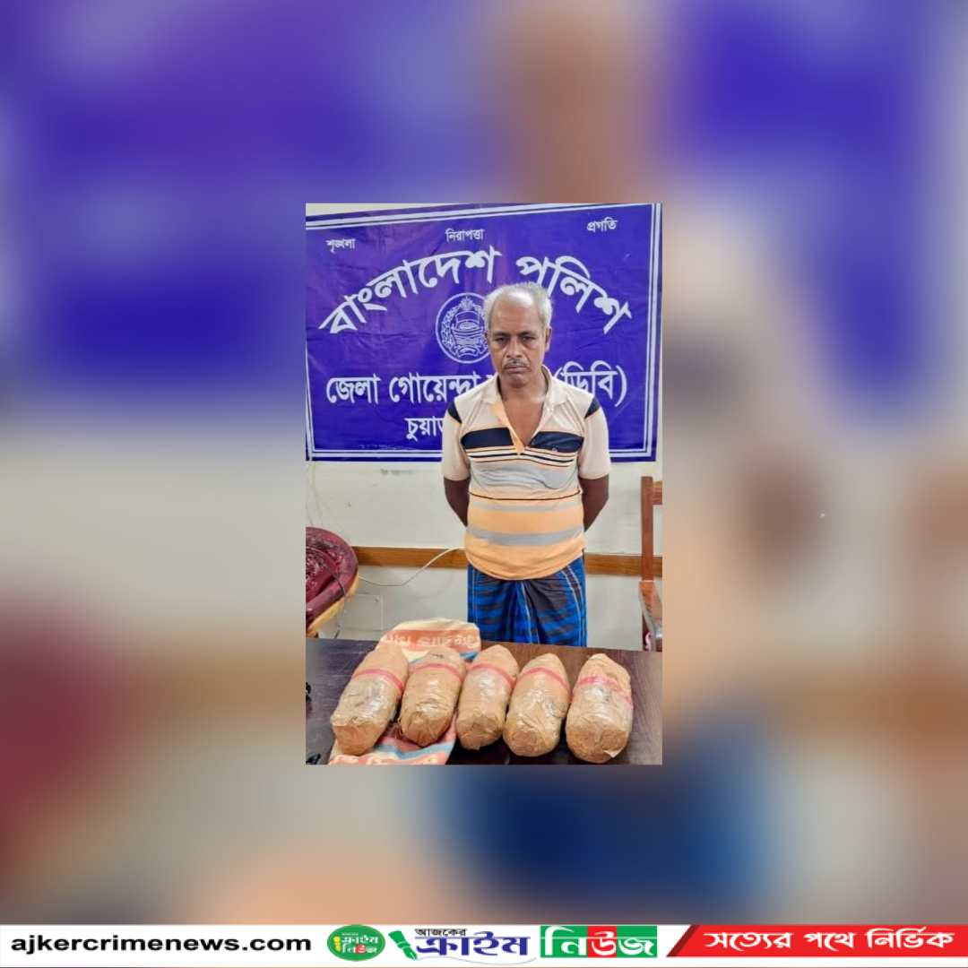 দামুড়হুদার দর্শনা থানাধীন কুড়ুলগাছি গ্রামের কেয়ামত আলীর ছেলে ইমদাদুল(৪৫) কে আটক করে তার দেহ তল্লাসী করে। এসময় তার কাছে থাকা ব্যাগে বিশেষ কায়দায় রাখা ২কেজি ৫শ গ্রাম গাঁজা উদ্ধার করা হয়।