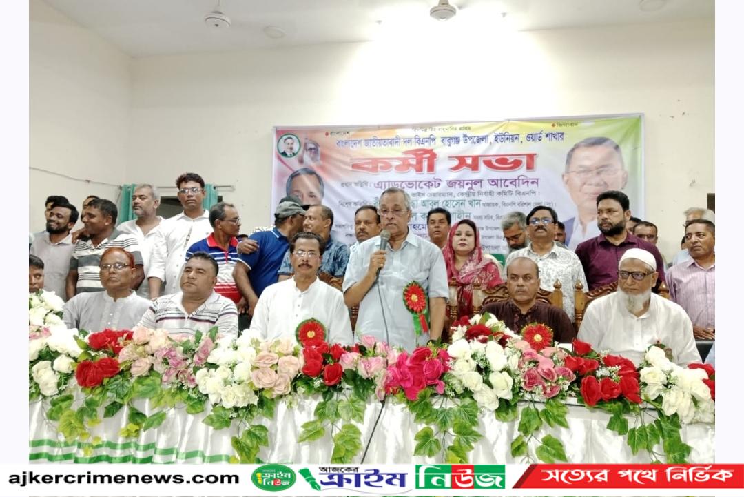 বাবুগঞ্জ উপজেলা বিএনপির আয়োজনে কর্মী সভায়, বাবুগঞ্জ উপজেলা জাতীয়তাবাদী দলের (বিএনপি) আহব্বায়ক মোঃ সুলতান আহম্মেদ খান এর সভাপতিত্বে প্রধান অতিথি হিসেবে উপস্থিত ছিলেন বিগত ২০১৮ সালে জাতীয় সংসদ নির্বাচনে (বাবুগঞ্জ-মূলাদী-৩) আসন থেকে ধানের শীষের মনোনীত প্রার্থী কেন্দ্রীয় বিএনপির ভাইস চেয়ারম্যান এ্যাড. জয়নুল আবেদীন।