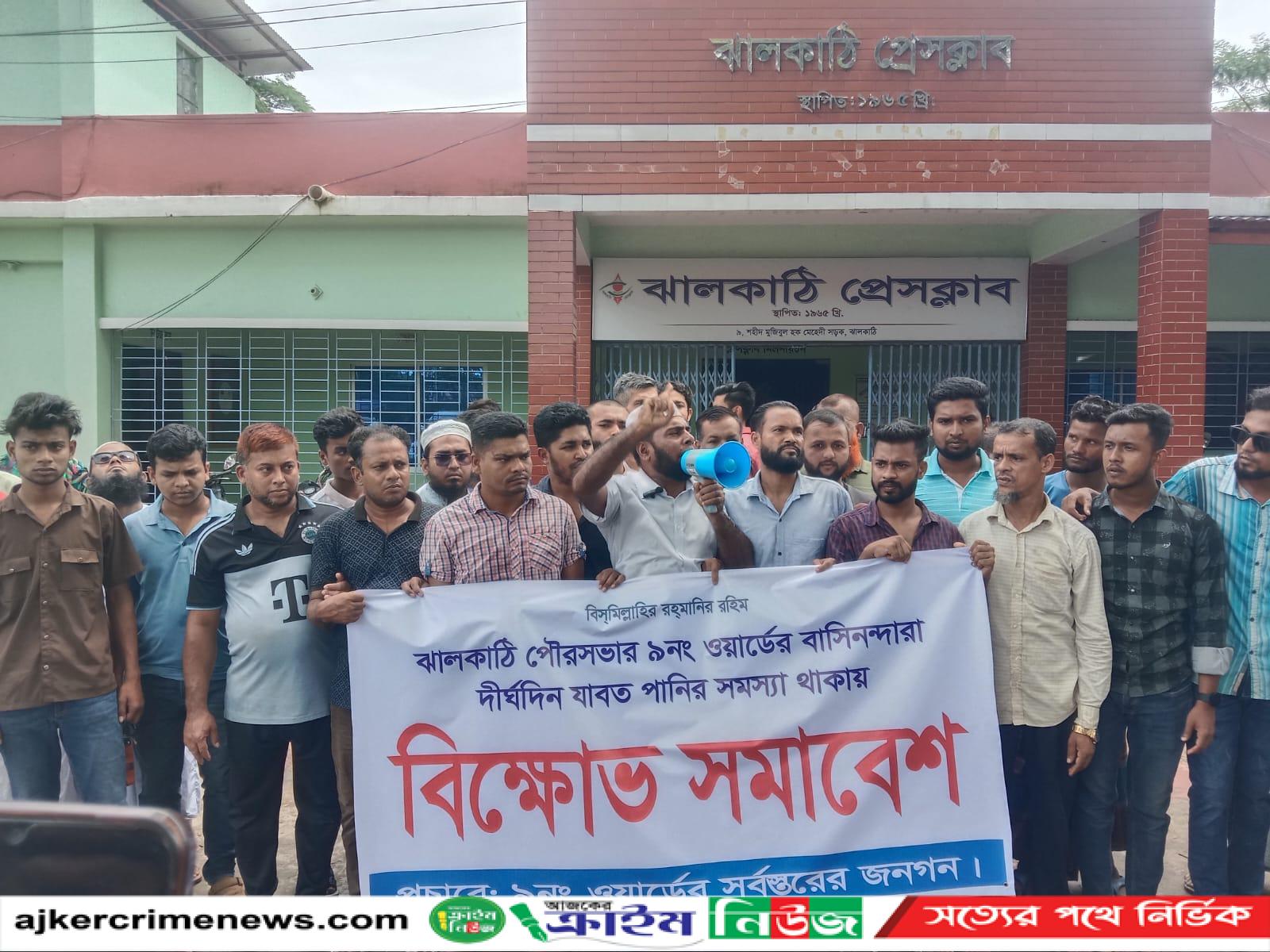 ঝালকাঠি প্রতিনিধি :ঝালকাঠি পৌর শহরের কলাবাগান হতে রবিবার সকালে পৌরসভার ৯নং ওয়ার্ডবাসীর উদ্যোগে পৌরসভার পানি সরবরাহে অব্যবস্থাপনার প্রতিবাদে বিক্ষোভ সমাবেশ নিয়ে বের হয়ে শহরের প্রধান প্রধান সড়ক প্রদক্ষিণ করে জেলা প্রশাসক কার্যালয়ের সামনে এসে শান্তিপূর্ণভাবে শেষ হয়।